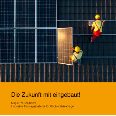 Photovoltaic systems positioned on flat roofs can have a decisive advantage: The PV modules can be mounted independently of a given roof orientation. Our Magic PV Flat Basic system provides even more benefits with a streamlined product range that offers the highest levels of flexibility. The mounting system for flat-roof systems is durable, highly resilient – thanks to the Magic click connection – and can be installed quickly and easily without screws or other tools. The flexible ridge gap permits infinitely variable system design. Magic PV Flat Basic is characterised by an integrated system for cable routing and simultaneous ballasting. This can be achieved using mesh cable tray systems, for example.