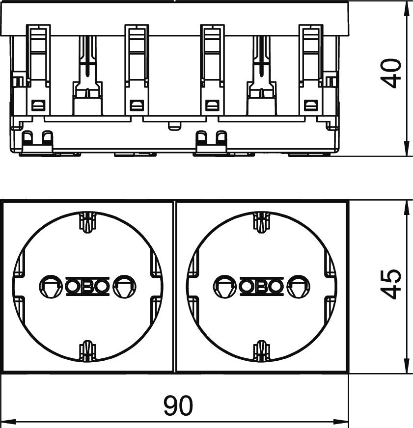 Closable no CO2 Footprint (GWP) Cradle-to-Gate 0,3227 kg CO2e / 1 Piece Coding no Colour Black-grey; RAL 7021 Connection type Screwless terminal Cover Central plate Depth 42 mm Dimension 250V, 10/16A Ejection mechanism no Error current protection no Fastening type Lock For more difficult conditions (according to VDE) no Halogen-free yes Height 45 mm Hinged cover no increased touch protection yes Insulated installation no Labelling panel no Material Polycarbonate Mounting type Device installation duct Nominal current 16 A Nominal voltage 250 V Number of poles 2 Number of units 2 Operating temperature, max. 40 °C Operating temperature, min. -5 °C Power reserve no Printed label/coding Without printing Protection rating Other Rotated central insert no Socket angle 0° Socket version Protective contact Special power supply Without special power supply Surface version Matt Surge protection no Transparent no Version for Double 0° Warning light no Width 90 mm With fine-wire fuse no With functional lighting no With on/off switch no With orientation lighting no - All types