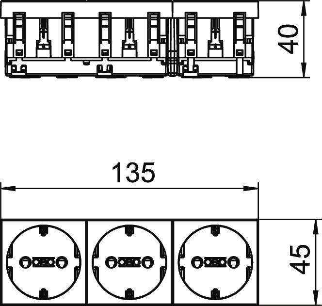 Product descriptionPower socket, triple 0°, with increased touch protection with screwless terminals, 2-pin, 16 A, 250 V~, with connection terminals to IEC 60884-1.
