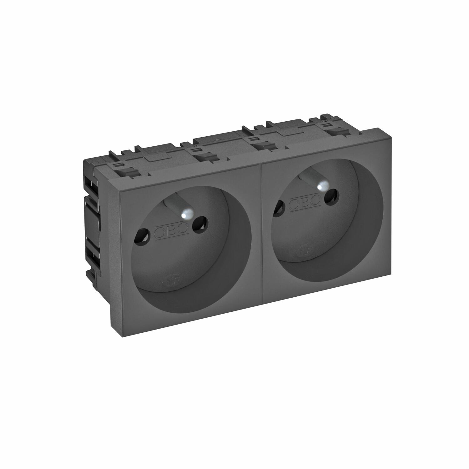 Product descriptionSocket with earthing pin, double 0°, with increased touch protection, with screwless terminals, 2-pin, 16 A, 250 V~, with connection terminals to IEC 60884-1.