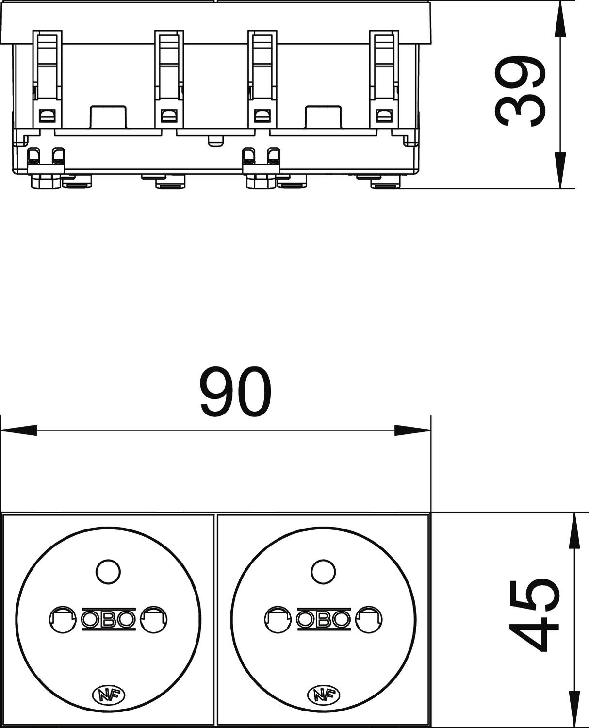Product descriptionSocket with earthing pin, double 0°, with increased touch protection, with screwless terminals, 2-pin, 16 A, 250 V~, with connection terminals to IEC 60884-1.