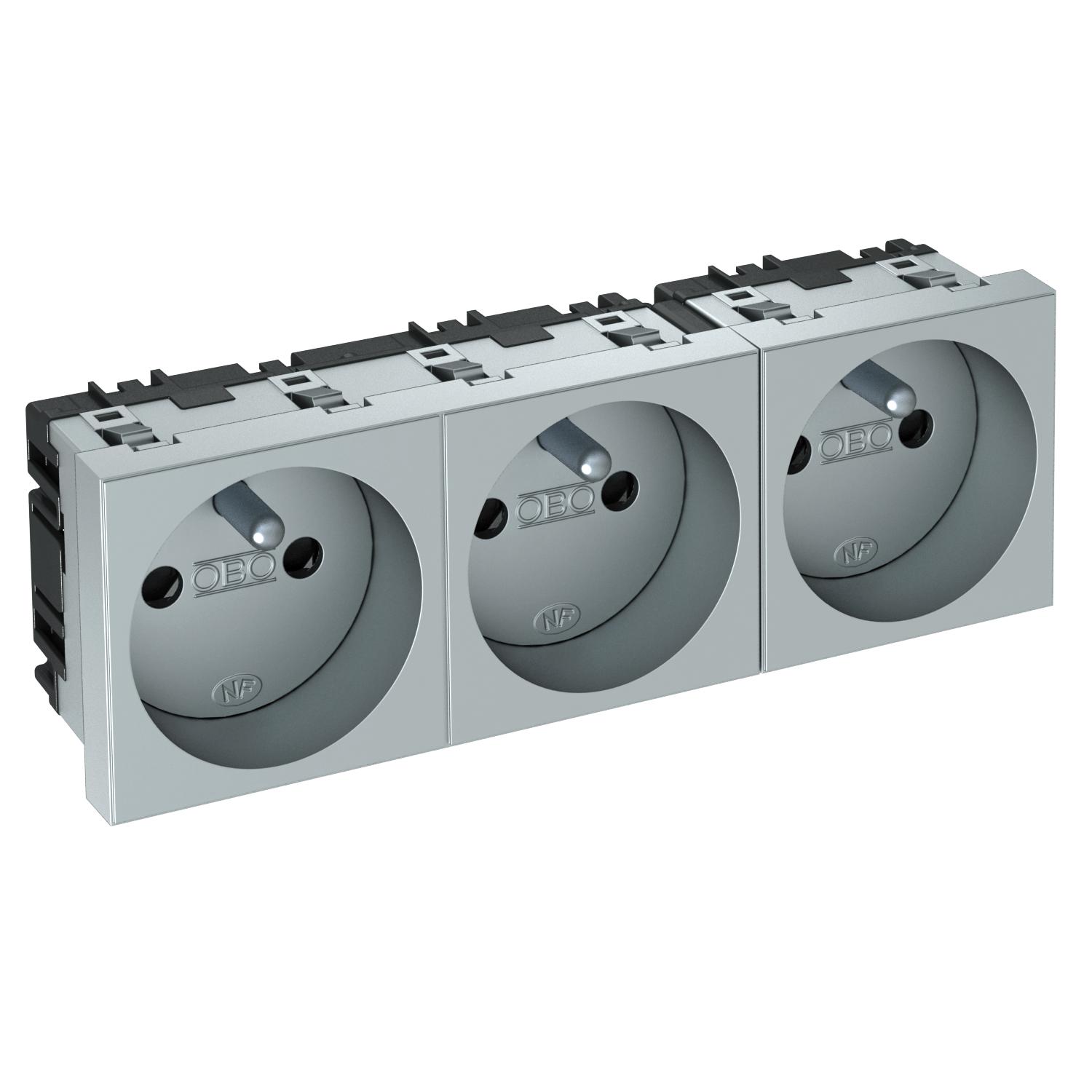 Approvals VDE Closable no CO2 Footprint (GWP) Cradle-to-Gate 0,7394 kg CO2e / 1 Piece Coding no Colour Aluminium painted Connection type Screwless terminal Cover Central plate Depth 39 mm Dimension 250V, 10/16A Ejection mechanism no Error current protection no Fastening type Lock For more difficult conditions (according to VDE) no Halogen-free yes Height 45 mm Hinged cover no increased touch protection yes Insulated installation no Labelling panel no Material Polycarbonate Mounting type Device installation duct Nominal current 16 A Nominal voltage 250 V Number of poles 2 Number of units 3 Operating temperature, max. 40 °C Operating temperature, min. -5 °C Printed label/coding Without printing Protection rating Other Rotated central insert no Socket angle 0° Socket version NF Special power supply Without special power supply Surface version Matt Surge protection no Transparent no Version for Triple 0° Warning light no Width 135 mm With fine-wire fuse no With functional lighting no With on/off switch no With orientation lighting no - All types