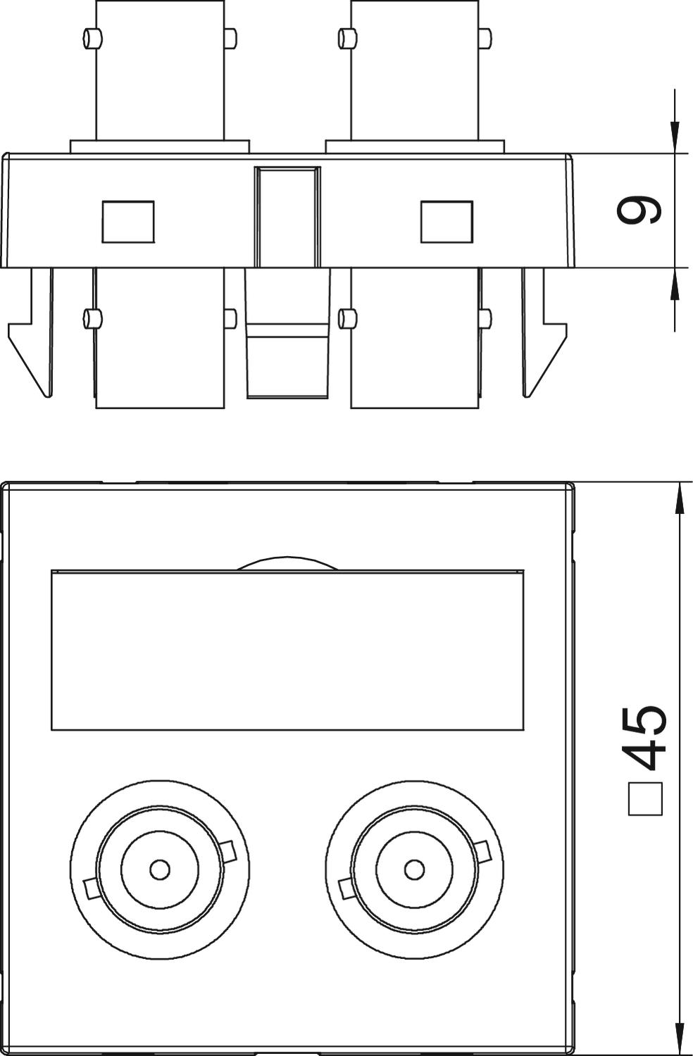 Product descriptionMultimedia support with two BNC connection sockets, straight cable outlet, with labelling panel, two BNC couplings, socket-socket version. Support plate with locking fastening, suitable for horizontal and vertical installation in the system environment.