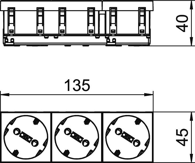 Closable no CO2 Footprint (GWP) Cradle-to-Gate 0,512 kg CO2e / 1 Piece Coding no Colour Aluminium painted Connection type Screwless terminal Cover Central plate Depth 42 mm Dimension 250V, 10/16A Ejection mechanism no Error current protection no Fastening type Lock For more difficult conditions (according to VDE) no Halogen-free yes Height 45 mm Hinged cover no increased touch protection yes Insulated installation no Labelling panel no Material Polycarbonate Mounting type Device installation duct Nominal current 16 A Nominal voltage 250 V Number of poles 2 Number of units 3 Operating temperature, max. 40 °C Operating temperature, min. -5 °C Printed label/coding Without printing Protection rating Other Rotated central insert yes Socket angle 33° Socket version Protective contact Special power supply Without special power supply Surface version Matt Surge protection no Transparent no Version for triple 33° Warning light no Width 135 mm With fine-wire fuse no With functional lighting no With on/off switch no With orientation lighting no - All types
