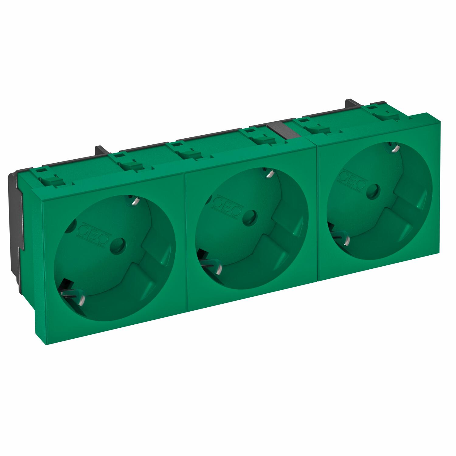 Closable no CO2 Footprint (GWP) Cradle-to-Gate 0,4959 kg CO2e / 1 Piece Coding no Colour Mint green; RAL 6029 Connection type Screwless terminal Cover Central plate Depth 42 mm Dimension 250V, 10/16A Ejection mechanism no Error current protection no Fastening type Lock For more difficult conditions (according to VDE) no Halogen-free yes Height 45 mm Hinged cover no increased touch protection yes Insulated installation no Labelling panel no Material Polycarbonate Mounting type Device installation duct Nominal current 16 A Nominal voltage 250 V Number of poles 2 Number of units 3 Operating temperature, max. 40 °C Operating temperature, min. -5 °C Printed label/coding Without printing Protection rating Other Rotated central insert yes Socket angle 33° Socket version Protective contact Special power supply Without special power supply Surface version Matt Surge protection no Transparent no Version for triple 33° Warning light no Width 135 mm With fine-wire fuse no With functional lighting no With on/off switch no With orientation lighting no - All types