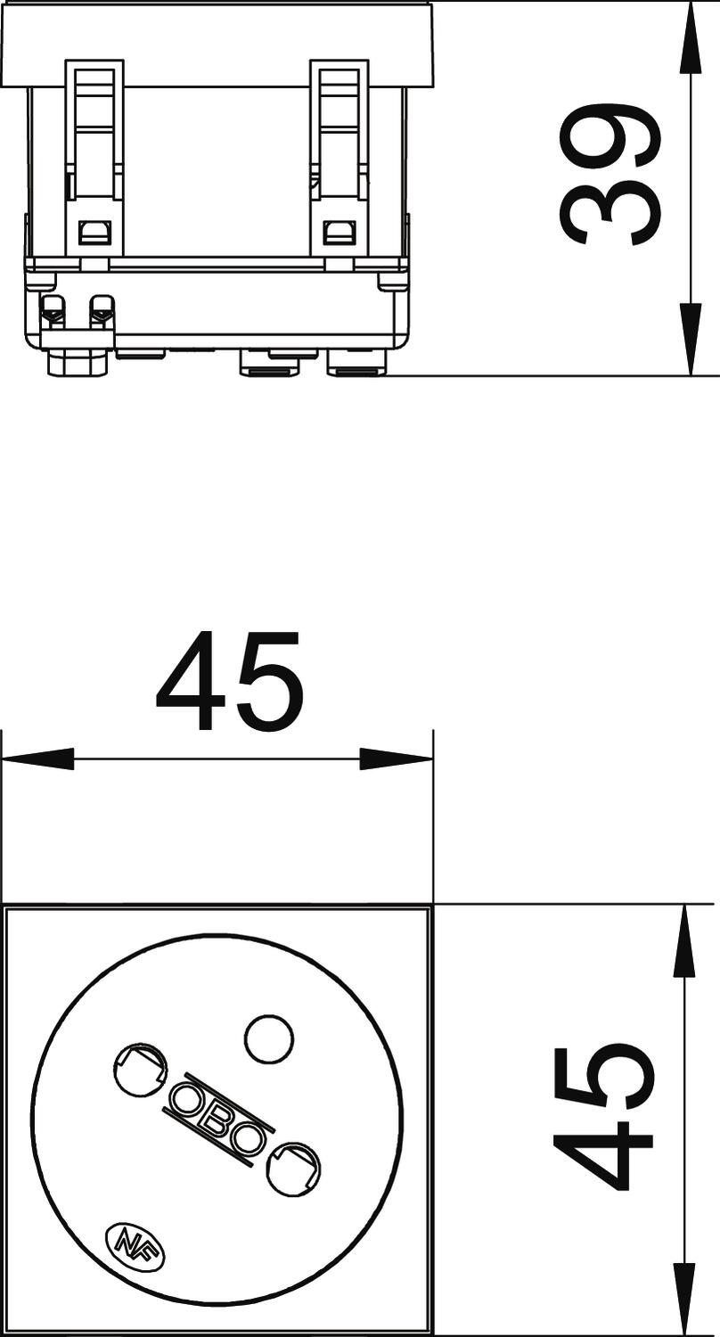 Approvals VDE Closable no CO2 Footprint (GWP) Cradle-to-Gate 0,2715 kg CO2e / 1 Piece Coding no Colour Aluminium painted Connection type Screwless terminal Cover Central plate Depth 39 mm Dimension 250V, 10/16A Ejection mechanism no Error current protection no Fastening type Lock For more difficult conditions (according to VDE) no Halogen-free yes Height 45 mm Hinged cover no increased touch protection yes Insulated installation no Labelling panel no Material Polycarbonate Mounting type Device installation duct Nominal current 16 A Nominal voltage 250 V Number of modules (for modular construction) 1 Number of poles 2 Number of units 1 Operating temperature, max. 40 °C Operating temperature, min. -5 °C Printed label/coding Without printing Protection rating Other Rotated central insert yes Socket angle 33° Socket version NF Special power supply Without special power supply Surface version Matt Surge protection no Transparent no Version for Single 33° Warning light no Width 45 mm With fine-wire fuse no With functional lighting no With on/off switch no With orientation lighting no - All types