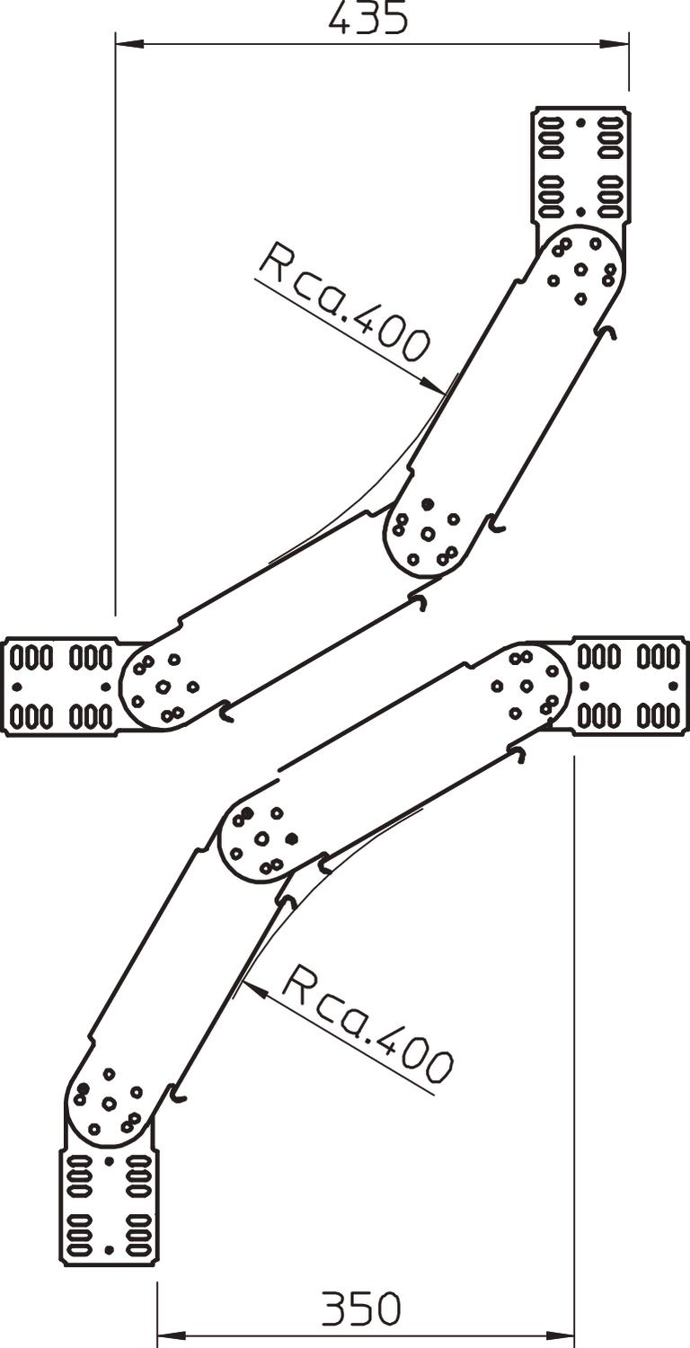 Bend (angle) 90° Change of direction Vertical, rising/falling Colour zinc Connector version Supplied connectors Dimension 85x100 Dimension R 400 mm Height 85 mm Height 3 in Maintain electrical functions no Material Steel Mounting perforation in base no NATO hole pattern no Plate thickness 1 mm Rustproof steel, pickled no Side perforation no Surface Hot-dip galvanised Type Adjustable bend_complete Type of connector, cable support system Screwed Wide-span version no Width 4 in Width 100 mm - All types