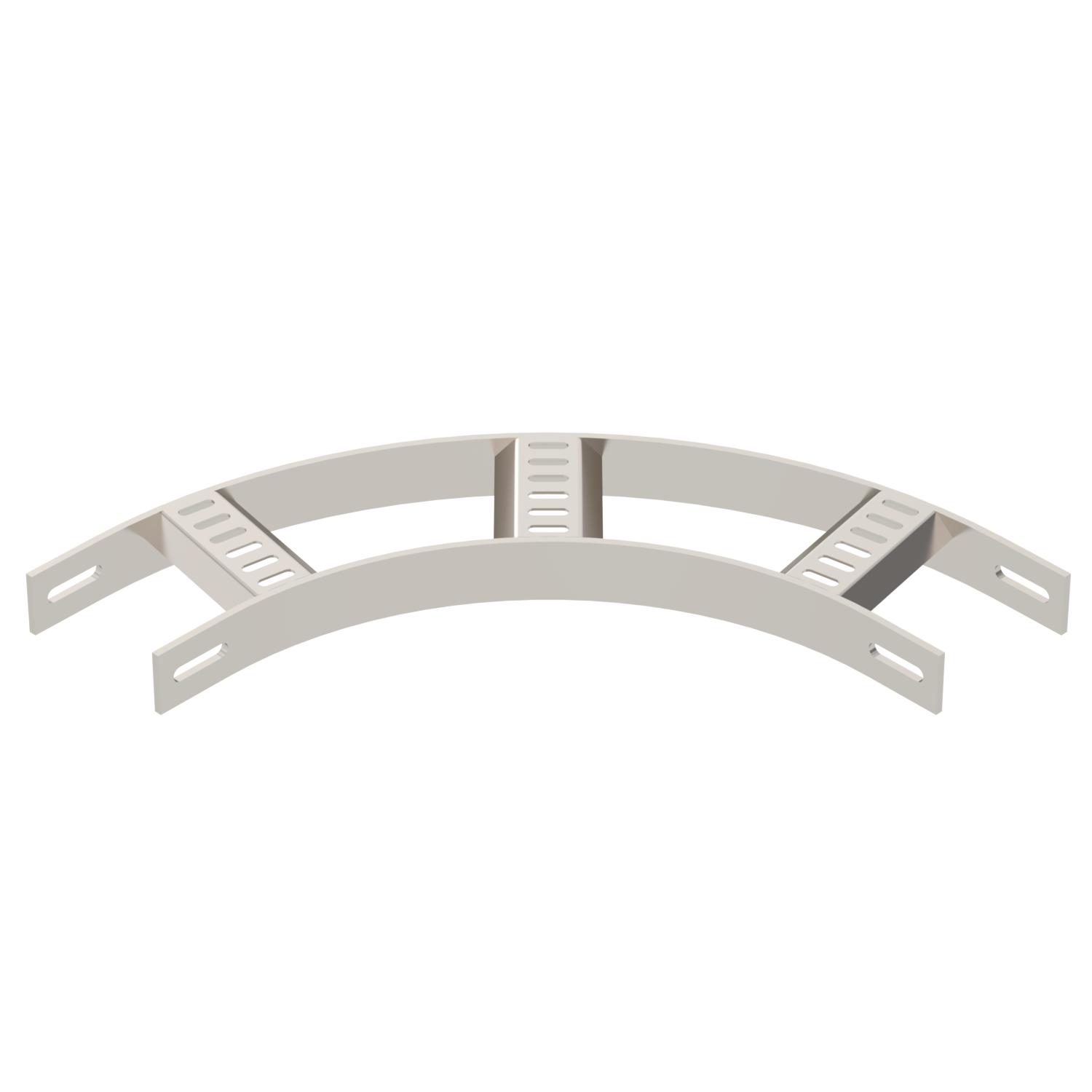 Product description90° bend for shipbuilding cable ladders, type SL 62, with side height of 40 mm with welded, perforated trapezoidal rungs which open in a downwards direction.