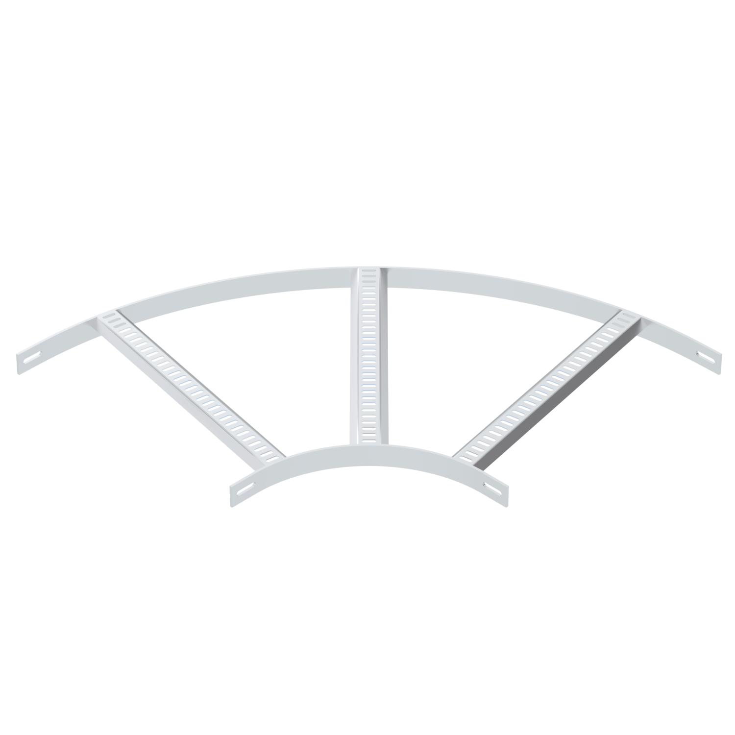 Product description90° bend for shipbuilding cable ladders, type SL 62, with side height of 40 mm with welded, perforated trapezoidal rungs which open in a downwards direction.