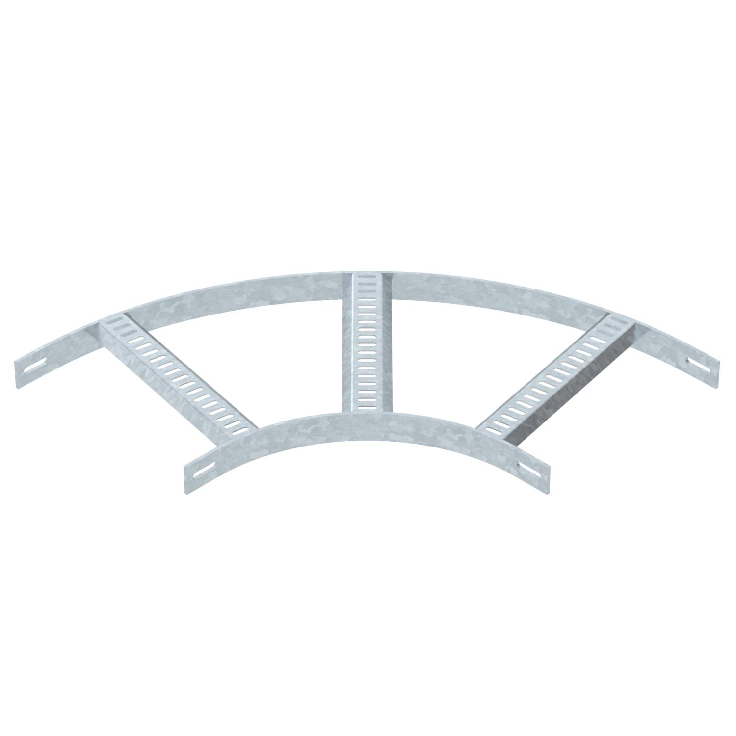 Product description90° bend for shipbuilding cable ladders, type SL 62, with side height of 40 mm with welded, perforated trapezoidal rungs which open in a downwards direction.