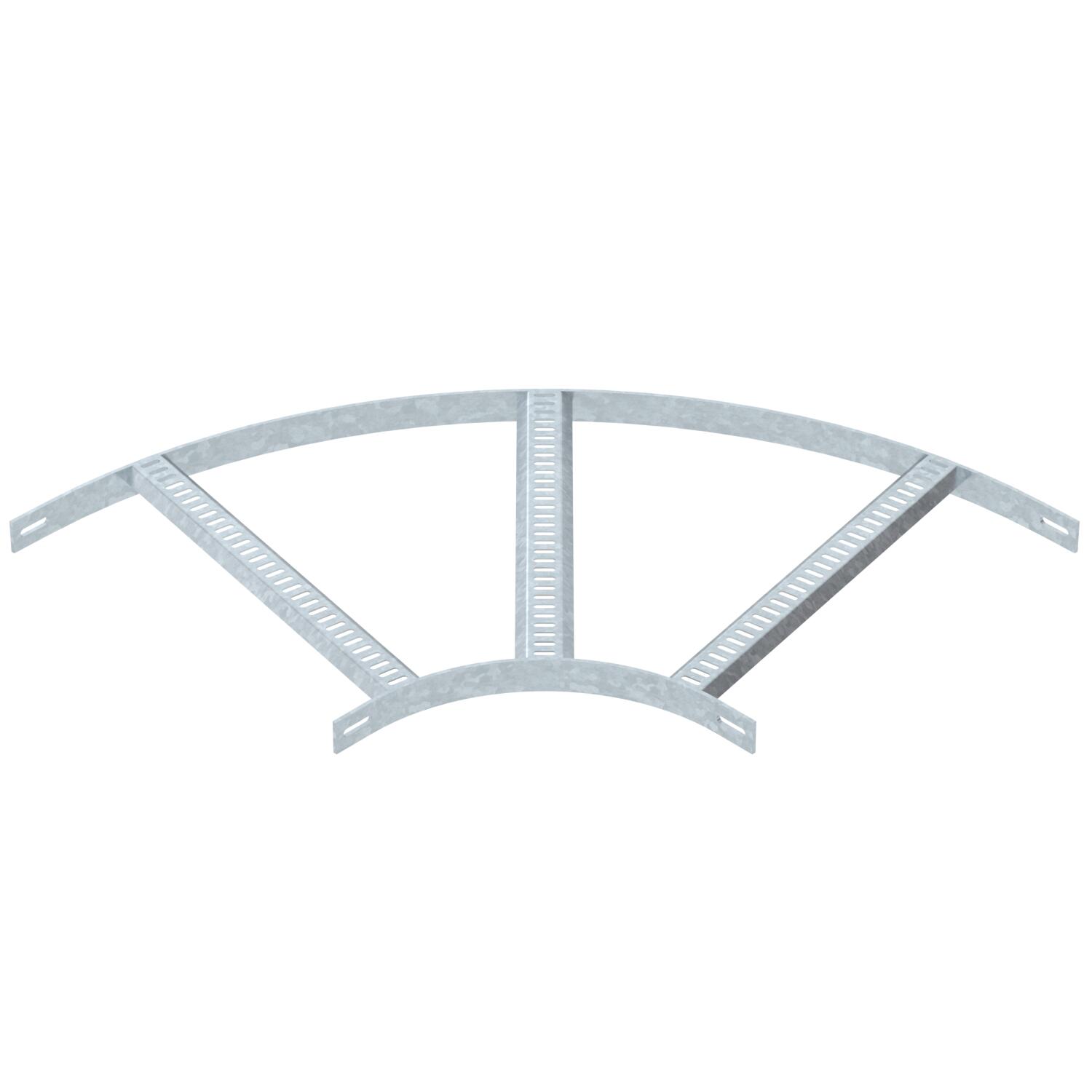 Product description90° bend for shipbuilding cable ladders, type SL 62, with side height of 40 mm with welded, perforated trapezoidal rungs which open in a downwards direction.