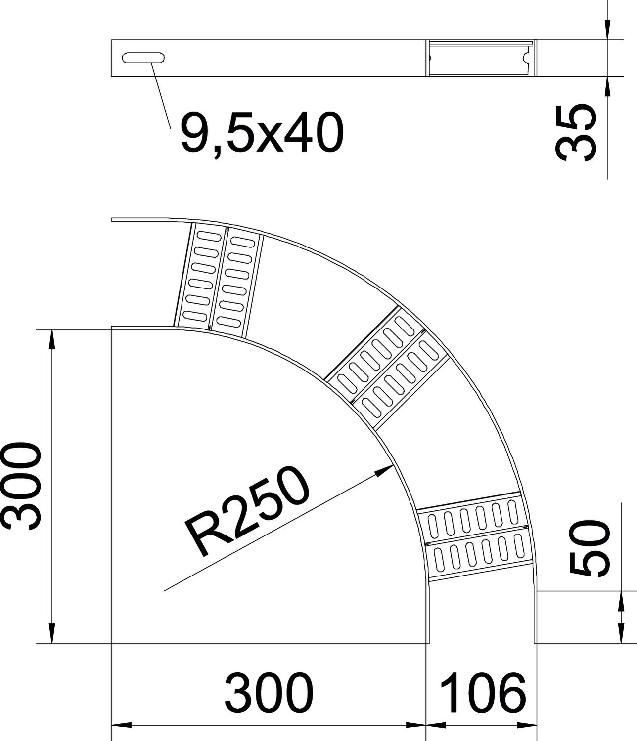 Product description90° bend for shipbuilding cable ladders, type SLZ L, with side height of 35 mm with welded, perforated Z rungs.