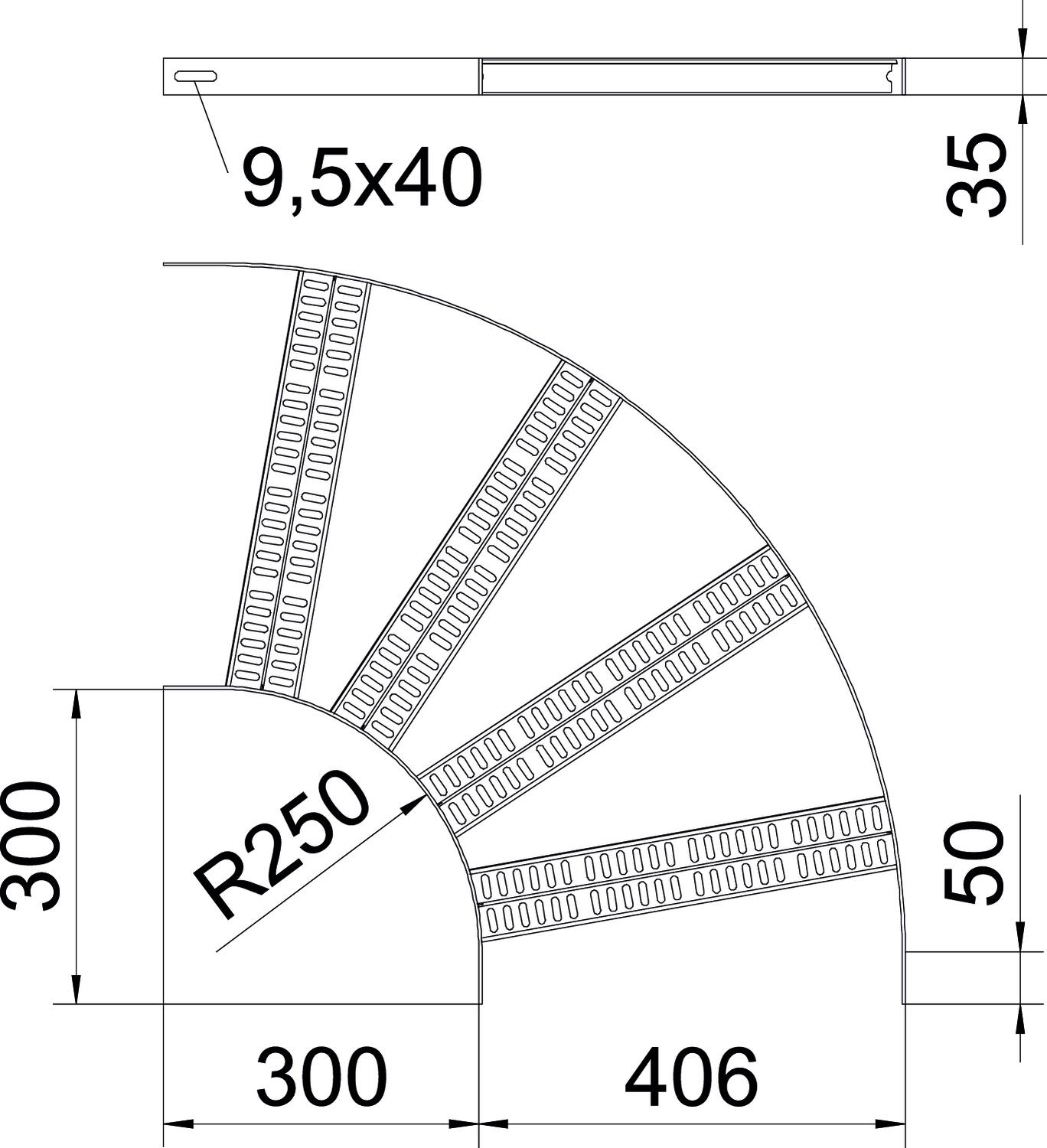 Bend (angle) 90° Change of direction Horizontal CO2 Footprint (GWP) Cradle-to-Gate 6,2046 kg CO2e / 1 Piece Colour zinc Connector version Without connectors Dimension B406mm Height 35 mm Hinged no Maintain electrical functions no Material Steel Rail thickness 3 mm Rustproof steel, pickled no Side perforation no Side rail version Flat profile Surface Hot-dip galvanised Version of the rungs Profile perforated Wide-span version no Width 400 mm - All types