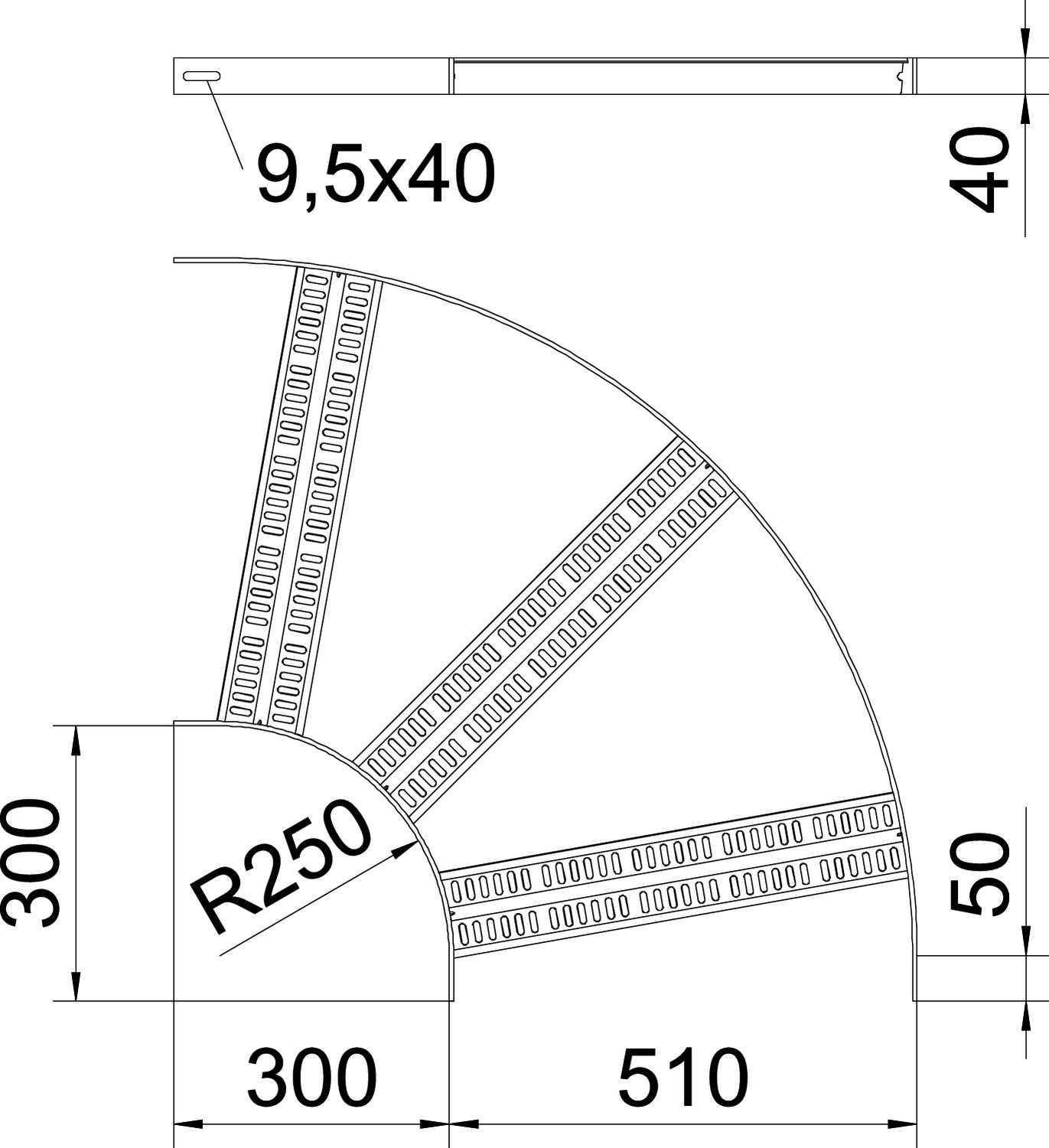 Bend (angle) 90° Change of direction Horizontal CO2 Footprint (GWP) Cradle-to-Gate 14,026 kg CO2e / 1 Piece Colour zinc Connector version Without connectors Dimension B510mm Height 40 mm Hinged no Maintain electrical functions no Material Steel Rail thickness 5 mm Rustproof steel, pickled no Side perforation no Side rail version Flat profile Surface Hot-dip galvanised Version of the rungs Profile perforated Wide-span version no Width 500 mm - All types