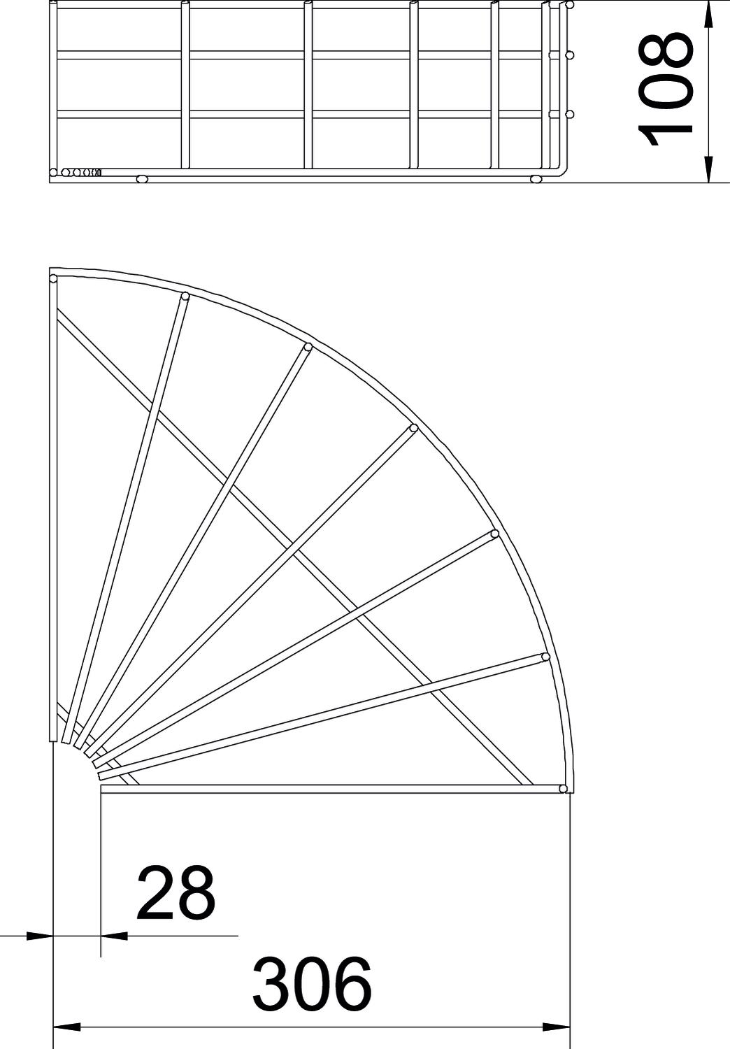 Product description90° bend, horizontal, for all mesh cable trays of 105 mm side height.