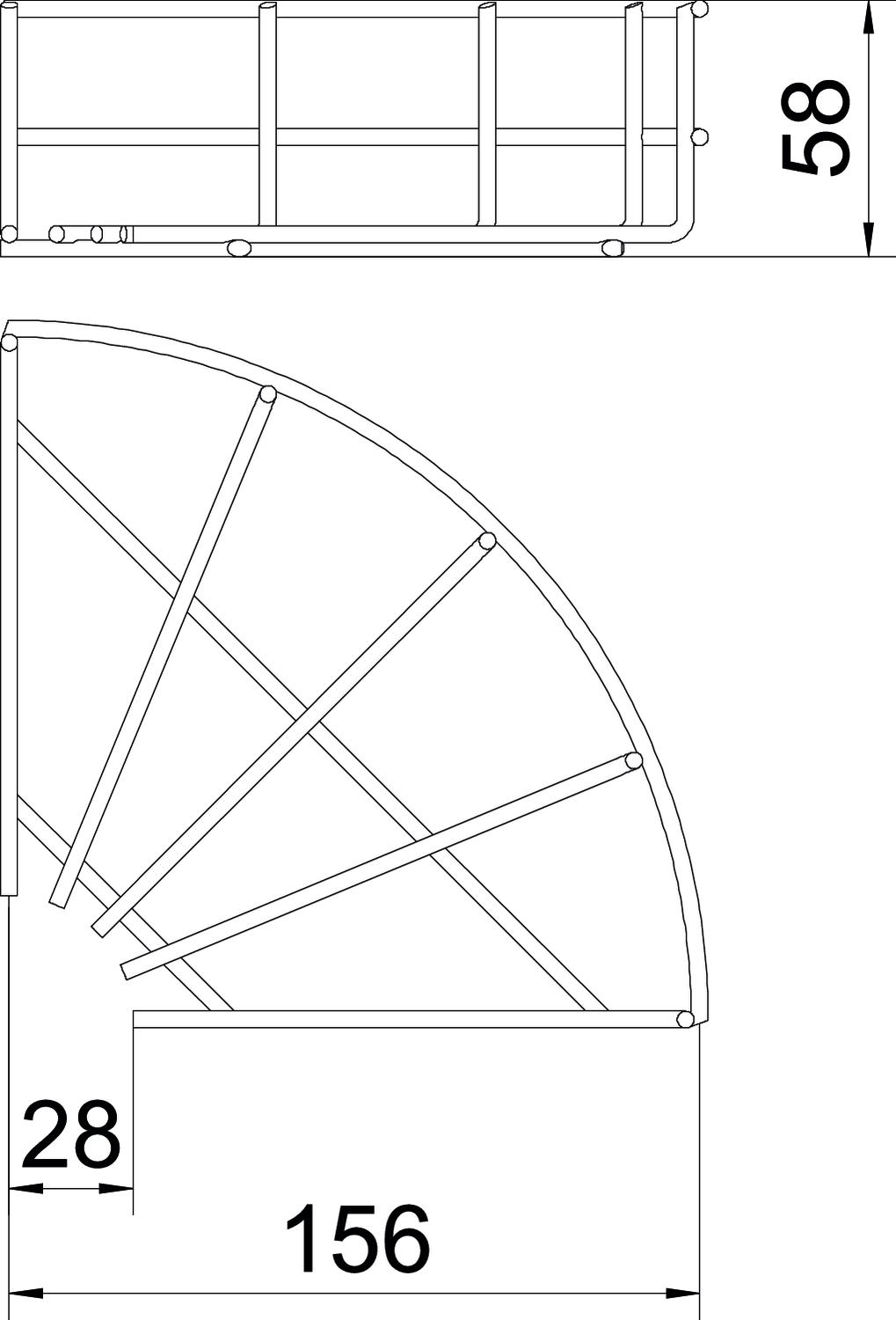 Product description90° bend, horizontal, for all mesh cable trays of 55 mm side height.
