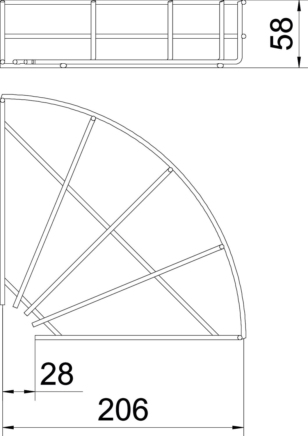 Product description90° bend, horizontal, for all mesh cable trays of 55 mm side height.