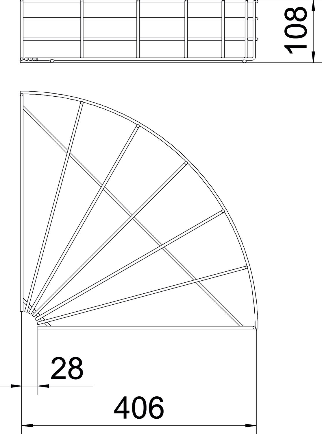 Product description90° bend, horizontal, for all mesh cable trays of 105 mm side height.