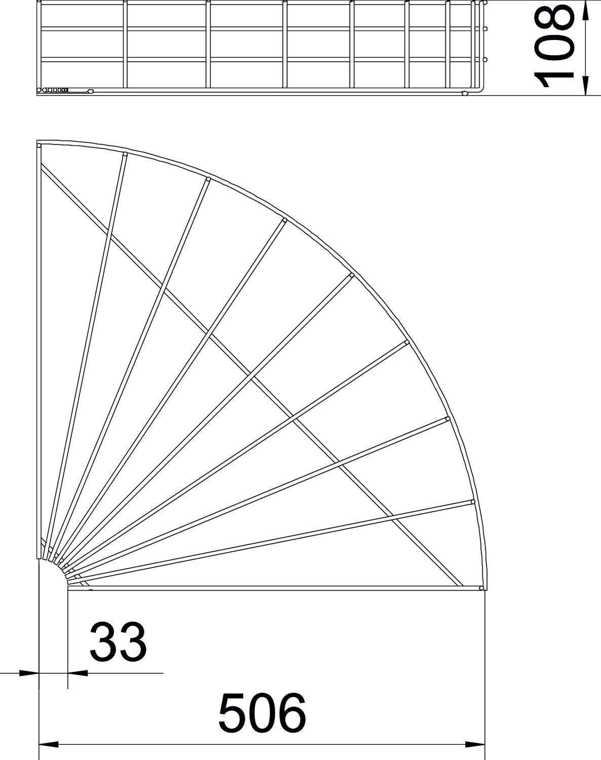 Product description90° bend, horizontal, for all mesh cable trays of 105 mm side height.