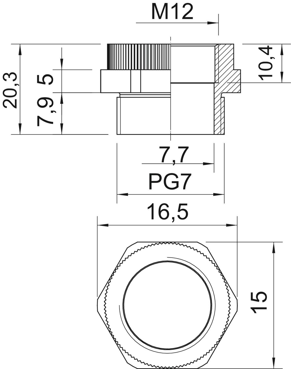 CO2 Footprint (GWP) Cradle-to-Gate 0,0172 kg CO2e / 1 Piece Colour Light grey; RAL 7035 Dimension PG7-M12 Dimension D 7,7 mm Dimension E 16,5 mm Dimension L 20,3 mm Dimension L1 7,9 mm Dimension L2 5 mm Dimension L3 10,4 mm explosion-proof no Material Polyamide Nickel-plated no Thread dimension, metric, internal 12 Thread dimension, PG, external 7 Thread type: External thread PG Thread type: Internal thread Metric WAF 15 - All types