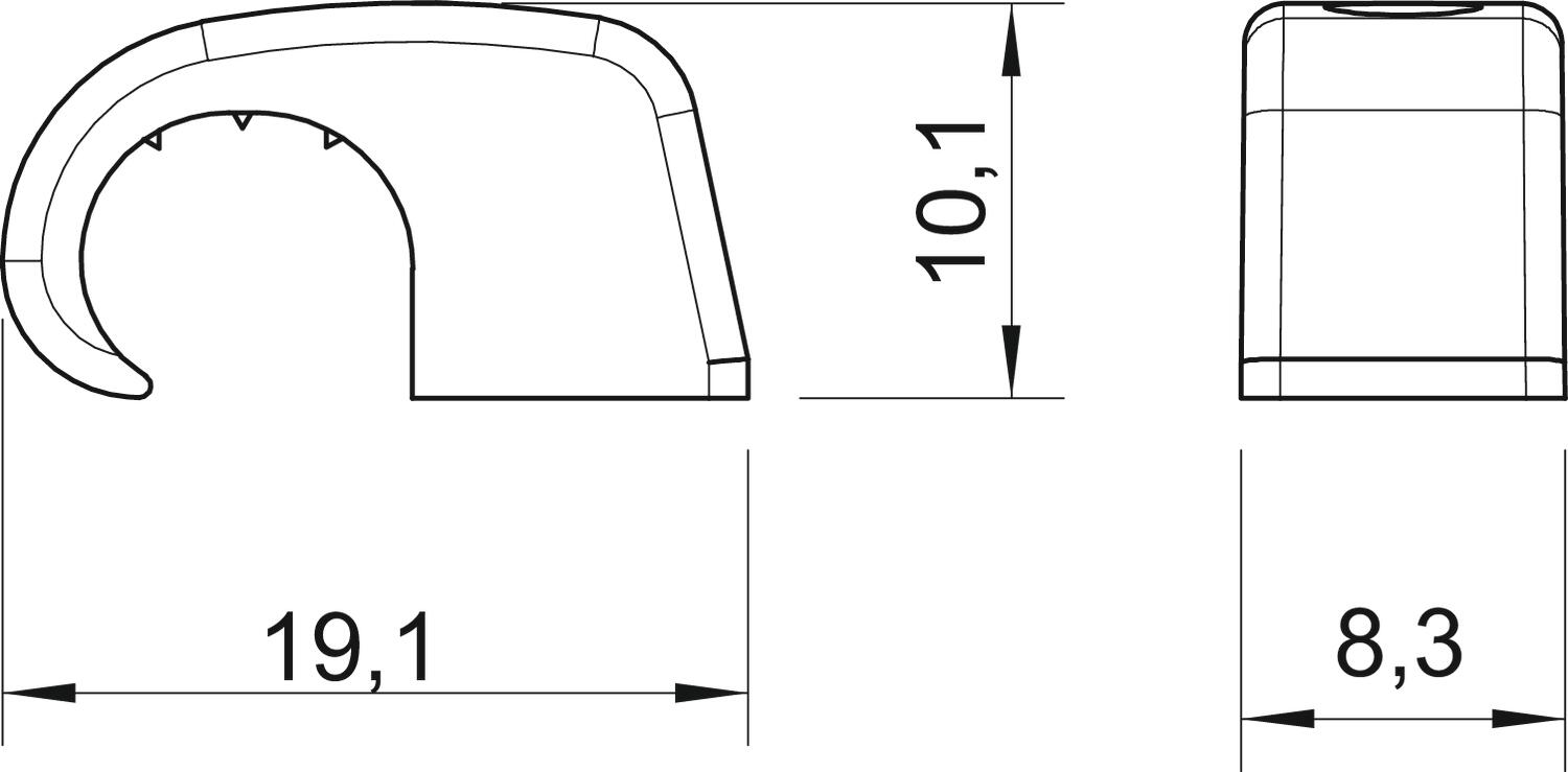CO2 Footprint (GWP) Cradle-to-Gate 0,0022 kg CO2e / 1 Piece Colour Light grey; RAL 7035 Dimension 7-12mm Dimension B 8,3 mm Dimension H 10,1 mm Dimension L 19,1 mm Double clip no for cable diameter, max. 12 mm for cable diameter, min. 7 mm For nail diameter 2 Halogen-free yes Hardened no Impact-resistant yes Material Polypropylene Pipe locking no Shape Round (for round conductor) With nail no - All types