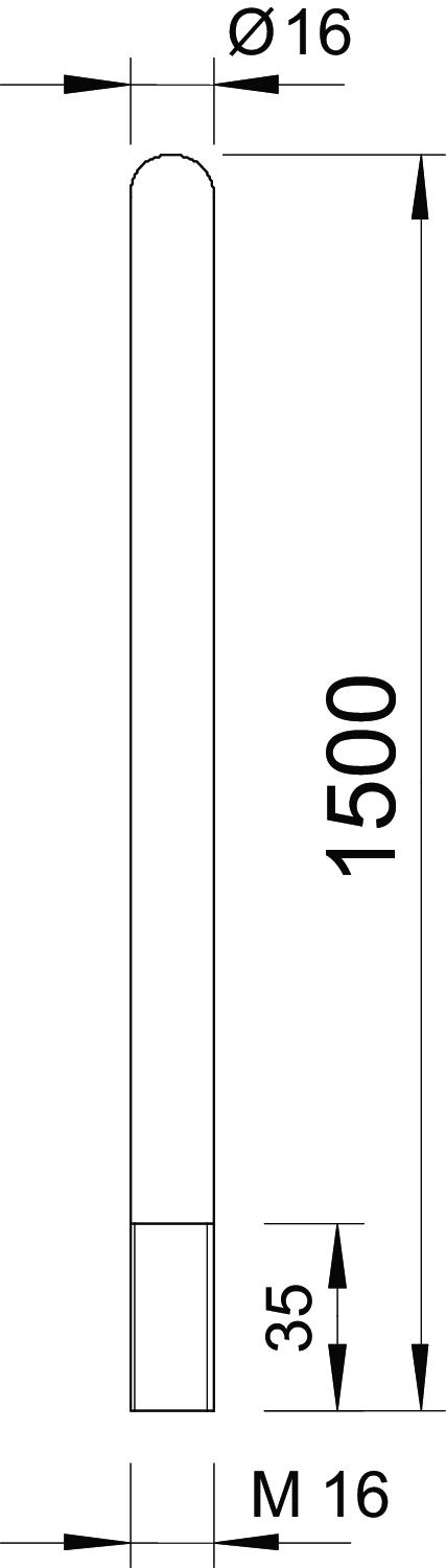 CO2 Footprint (GWP) Cradle-to-Gate 10,5462 kg CO2e / 1 Piece Connection Round conductor Dimension 1500mm Dimension L 1500 mm High voltage-resistant, insulated version no Length 1500 mm Material Aluminium Nominal size Ø 16 mm Version for Air-termination rod with thread - All types