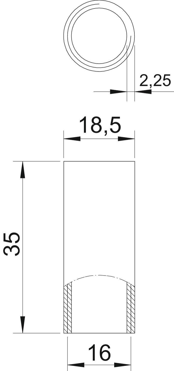 Brushed surface no Dimension M16x1,5 Dimension D 18,5 mm Dimension d 16 mm Dimension L 35 mm Dimension m (mm) M16 Dimension t 2,25 mm for pipe diameter 16 mm Halogen-free no Length 35 mm Material Aluminium Permitted temperature range, max. 250 °C Permitted temperature range, min. -45 °C Polished surface no Size 16 Thread M16x1,5 Two-part no Version for Thread With inspection opening and lid no - All types