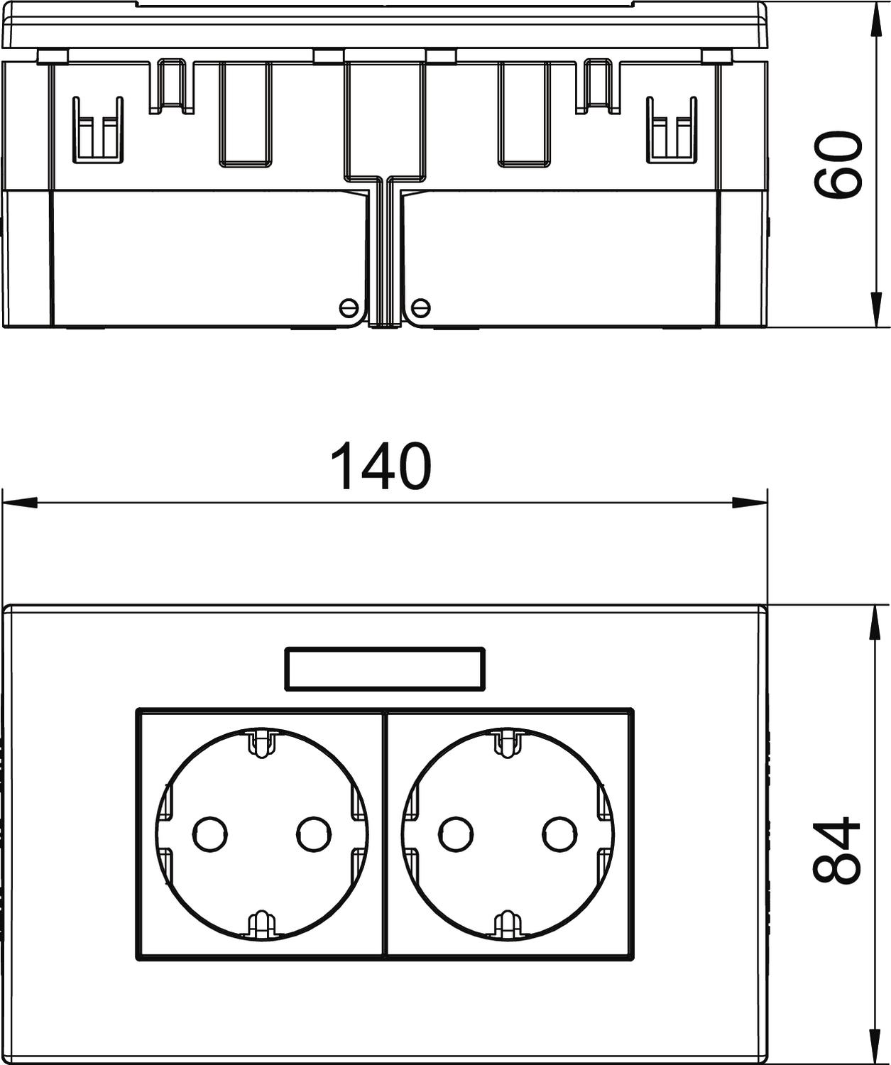 Closable no CO2 Footprint (GWP) Cradle-to-Gate 0,9268 kg CO2e / 1 Piece Coding no Colour Pure white; RAL 9010 Connection type Screwless terminal Cover Complete housing Depth 60 mm Dimension 84x140x59mm Ejection mechanism no Error current protection no Fastening type Lock For more difficult conditions (according to VDE) no Halogen-free yes Height 84 mm Hinged cover no increased touch protection yes Insulated installation no Labelling panel yes Material Polycarbonate Mounting type Device installation duct Nominal current 16 A Nominal voltage 250 V Number of poles 2 Number of units 2 Power reserve no Printed label/coding Without printing Protection rating Other Rotated central insert no Socket angle 0° Socket version Protective contact Special power supply Without special power supply Surface version Matt Surge protection no Transparent no Version for Double 0° Warning light no Width 140 mm With fine-wire fuse no With functional lighting no With on/off switch no With orientation lighting no - All types