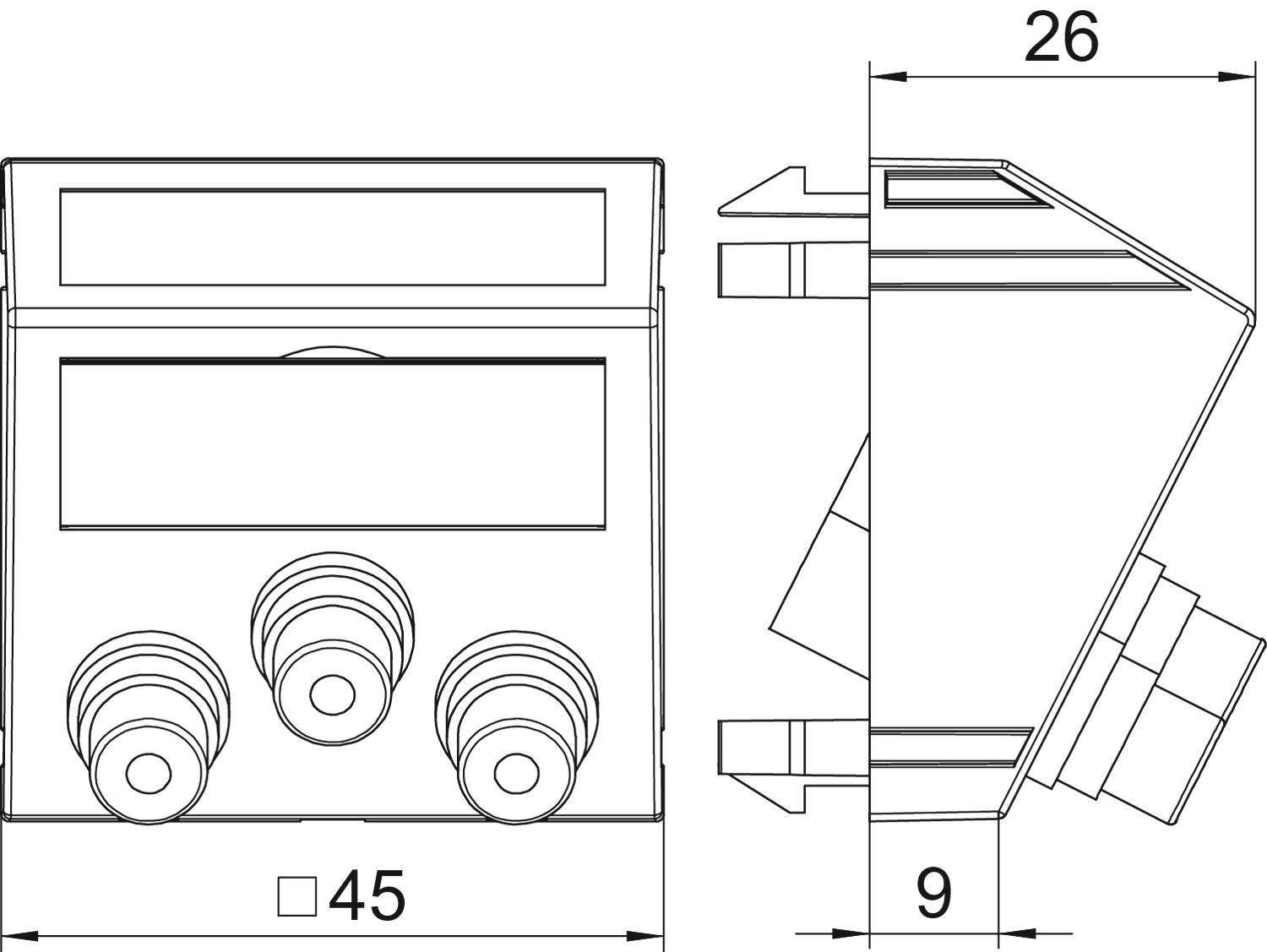 Product descriptionMultimedia support with three cinch connection sockets for audio/video, slanting cable outlet, with labelling panel, three cinch sockets (RCA) with soldered connection, colour coding yellow / red / white. Support plate with locking fastening, suitable for horizontal and vertical installation in the system environment.