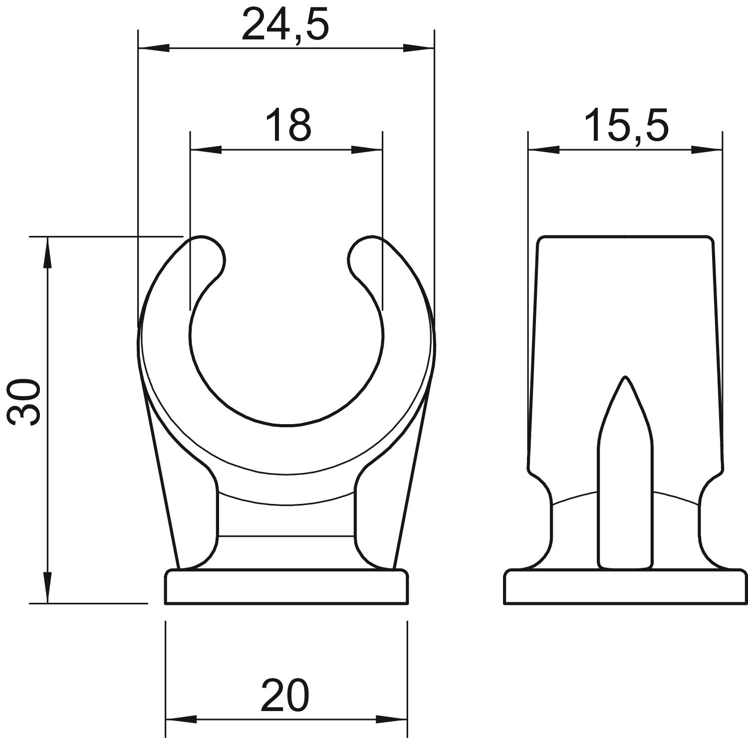 Clamping range D, max. 18 mm Clamping range D, min. 16 mm CO2 Footprint (GWP) Cradle-to-Gate 0,0153 kg CO2e / 1 Piece Colour Light grey; RAL 7035 Dimension 16-18mm Dimension A 24,5 mm Dimension B 15,5 mm Dimension C 20 mm Dimension H 30 mm Fastening type Threaded connection Halogen-free yes Material Polypropylene Nominal diameter 17,1 mm Number of cables/pipes 1 Plastic-covered no Size 16-18 Suitable in fire protection area no UV-resistant no Version for Single-lobe - All types