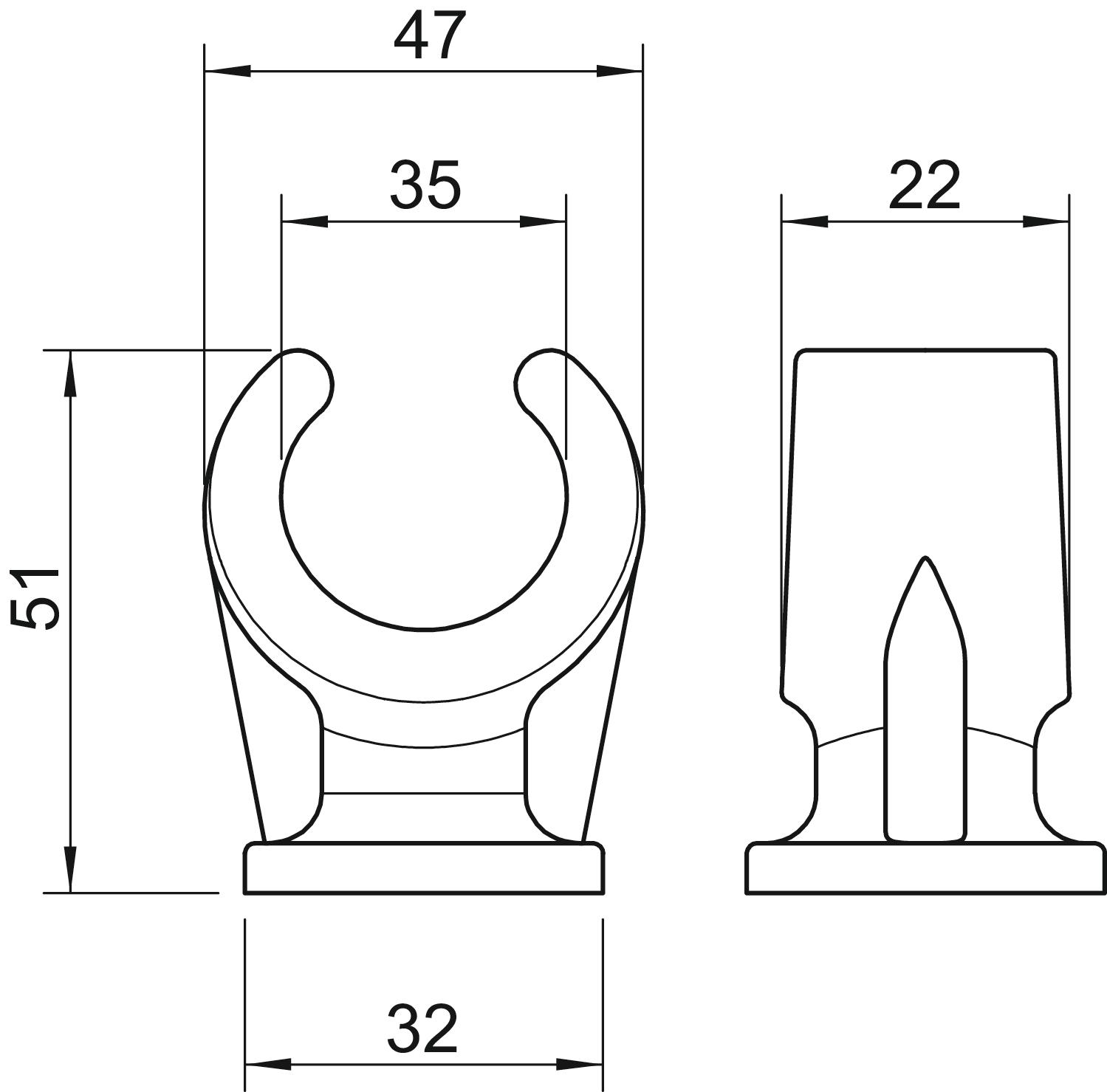 Clamping range D, max. 35 mm Clamping range D, min. 32 mm CO2 Footprint (GWP) Cradle-to-Gate 0,0568 kg CO2e / 1 Piece Colour Light grey; RAL 7035 Dimension 32-35mm Dimension A 47 mm Dimension B 22 mm Dimension C 32 mm Dimension H 51 mm Fastening type Threaded connection Halogen-free yes Material Polypropylene Nominal diameter 31,4 mm Number of cables/pipes 1 Plastic-covered no Size 32-35 Suitable in fire protection area no UV-resistant no Version for Single-lobe - All types