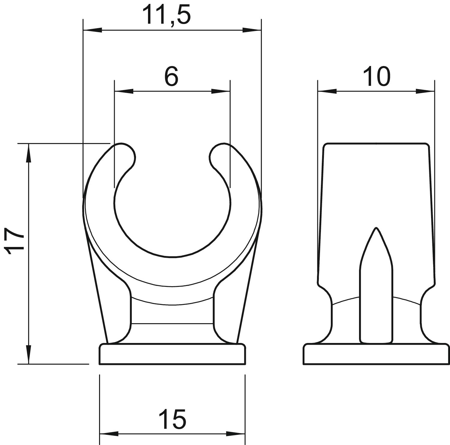 Clamping range D, max. 6 mm Clamping range D, min. 6 mm CO2 Footprint (GWP) Cradle-to-Gate 0,0052 kg CO2e / 1 Piece Colour Light grey; RAL 7035 Dimension 6mm Dimension A 11,5 mm Dimension B 10 mm Dimension C 15 mm Dimension H 17 mm Fastening type Threaded connection Halogen-free yes Material Polypropylene Nominal diameter 5,6 mm Number of cables/pipes 1 Plastic-covered no Size 6 Suitable in fire protection area no UV-resistant no Version for Single-lobe - All types