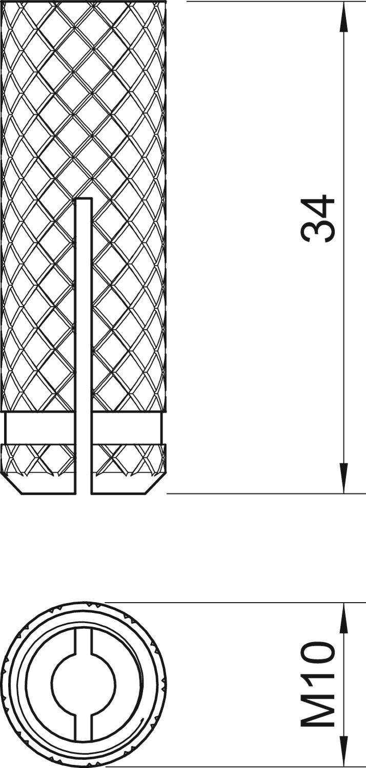 Diameter 12 mm Dimension M10 Dimension D 12 mm Dimension L 34 mm Drill hole depth 53 mm Drill hole diameter, min. 12 mm Length 34 mm Material Brass Pull-out value 9000 N Suitable for fastening with cable ties no Suitable for hexagonal wood screw no Suitable for material Concrete, Full brick, Wood Thread M10 Version for Spreading anchor With bolts no - All types