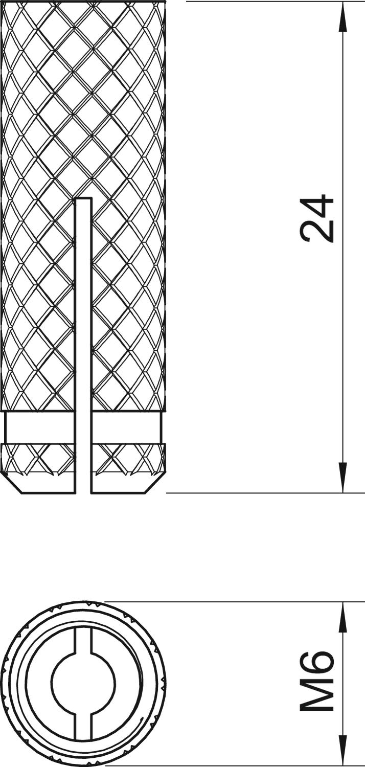 Diameter 7,5 mm Dimension M6 Dimension D 7,5 mm Dimension L 24 mm Drill hole depth 32 mm Drill hole diameter, min. 8 mm Length 24 mm Material Brass Pull-out value 6000 N Suitable for fastening with cable ties no Suitable for hexagonal wood screw no Suitable for material Concrete, Full brick, Wood Thread M6 Version for Spreading anchor With bolts no - All types