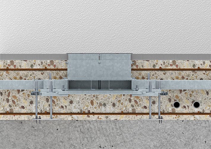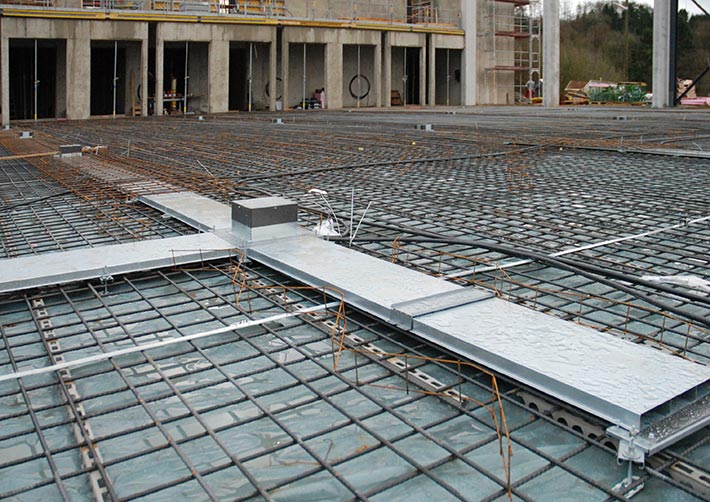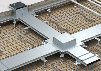 The in-concrete duct system is suitable for use in concrete floor plates and concrete ceilings ‒ irrespective of whether they are ceilings encased during construction or are ceilings made of filigree plates. Thanks to its continuous height adjustment of ducts and sockets, the system can adapted to all kinds of project requirements.