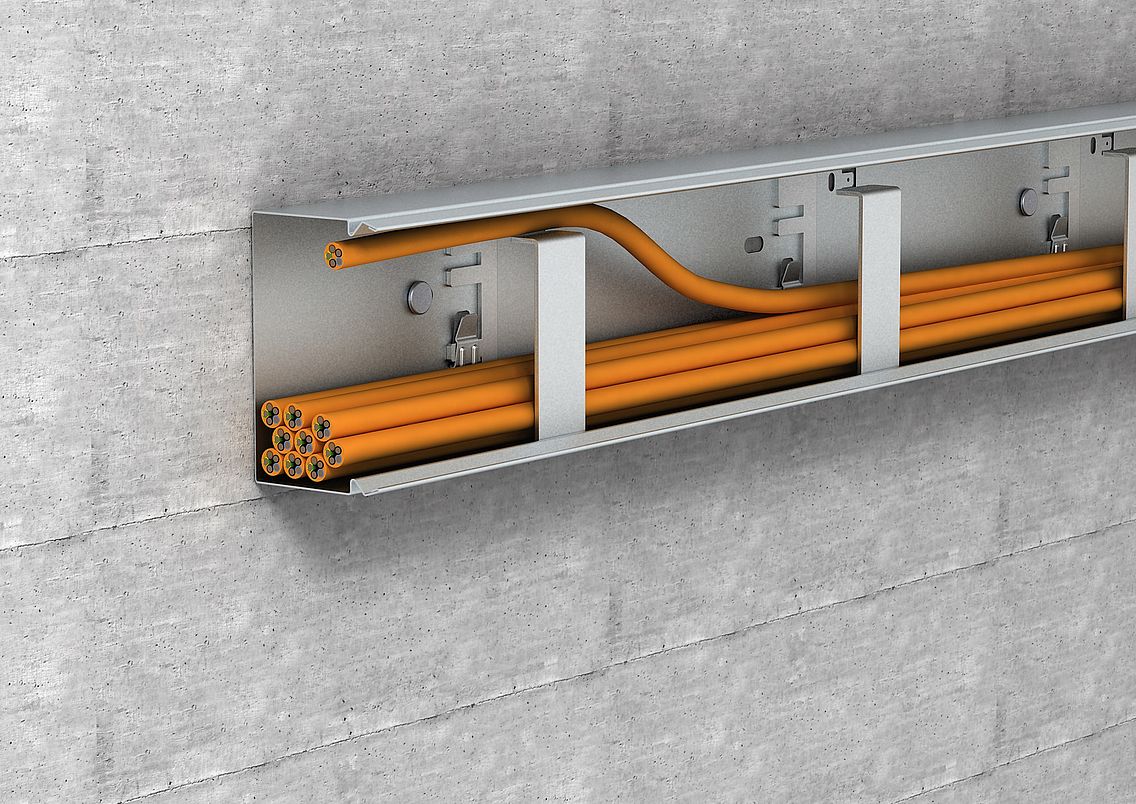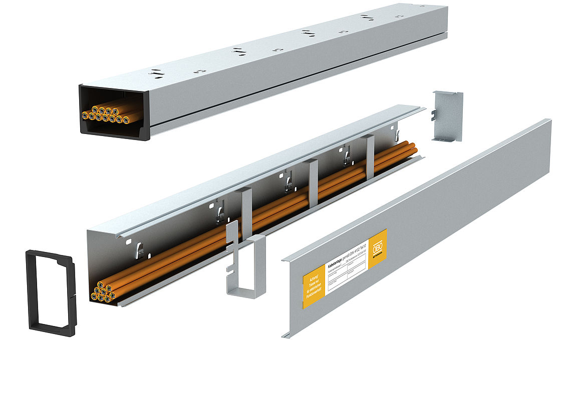 The LKM cable trunking can prove itself in the routing and protection of cables and with regards to the maintenance of electrical function. Cable routing with metallic LKM cable trunking is approved as a cable-specific routing type according to DIN 4102 Part 12 for the maintenance of electrical function classes E30 to E90. The LKM20030 trunking has been specially tested for fire and telecommunications cables. The LKM60100 trunking has been tested for power, fire and telecommunications cables.