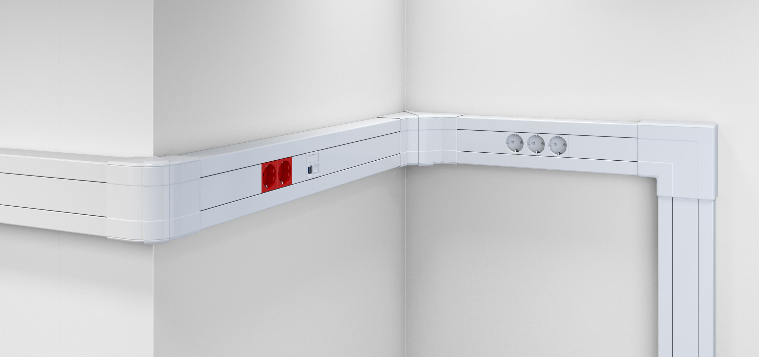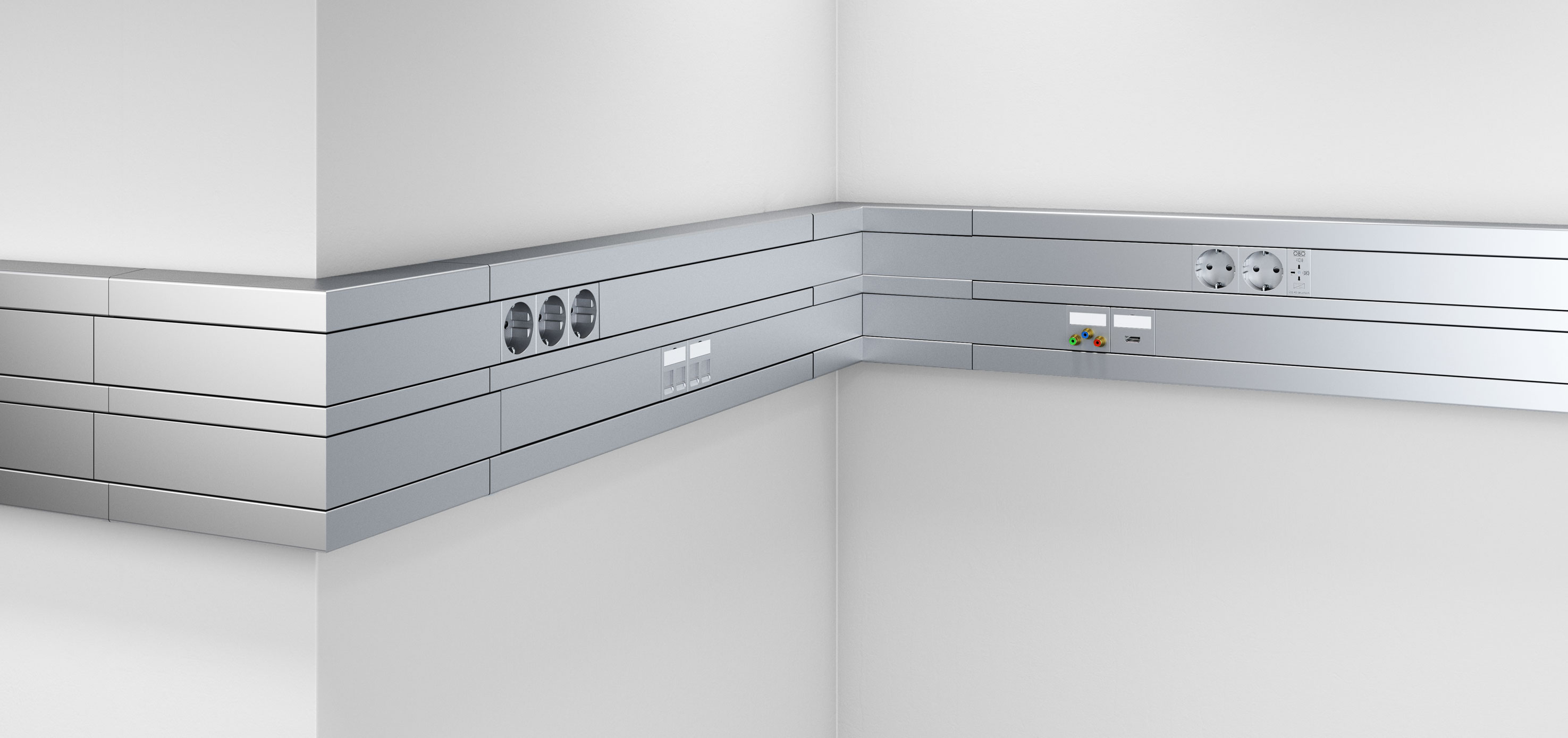 Its innovative fittings enable practical wall installations in any location – whether in an office or administration area, or in industrial settings. The Dado trunking unites symmetry, homogenous colour quality and technical flexibility into just one system.