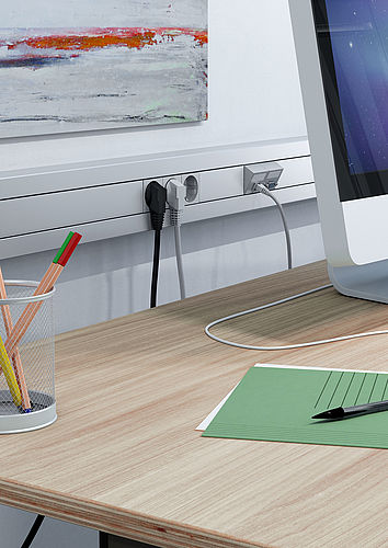 With anodised or pure white powder-coated surfaces, aluminium Rapid 45-2 Dado trunking adds a touch of elegance to any workplace. We offer you a maximum of flexibility: we can produce all special colors on request, including the timeless trend color black.
