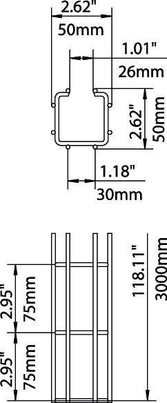 CO2 Footprint (GWP) Cradle-to-Gate 6,8716 kg CO2e / 1 Meter Colour stainless steel Connector version Without connectors Dimension 50x50x3000 Dimension A 26 mm Dimension B 67 mm Dimension H 67 mm Dimension l1 30 mm Height 1,97 in Height 50 mm Integrated partition Without Length 3000 mm Load test type according to IEC 61537 Type II Maintain electrical functions no Material Stainless steel 1.4301 Profile shape C-shaped Rustproof steel, pickled yes Support spacing 1.0 m 0,95 kN/m Support spacing 1.5 m 0,6 kN/m Support spacing 2.0 m 0,35 kN/m Surface Bright, treated Type of connector, cable support system Screwed Usable cross-section 13 cm² Usable cross-section 1300 mm² Wide-span version no Width 50 mm Width 1,97 in Wire diameter 4,5 mm Technical data