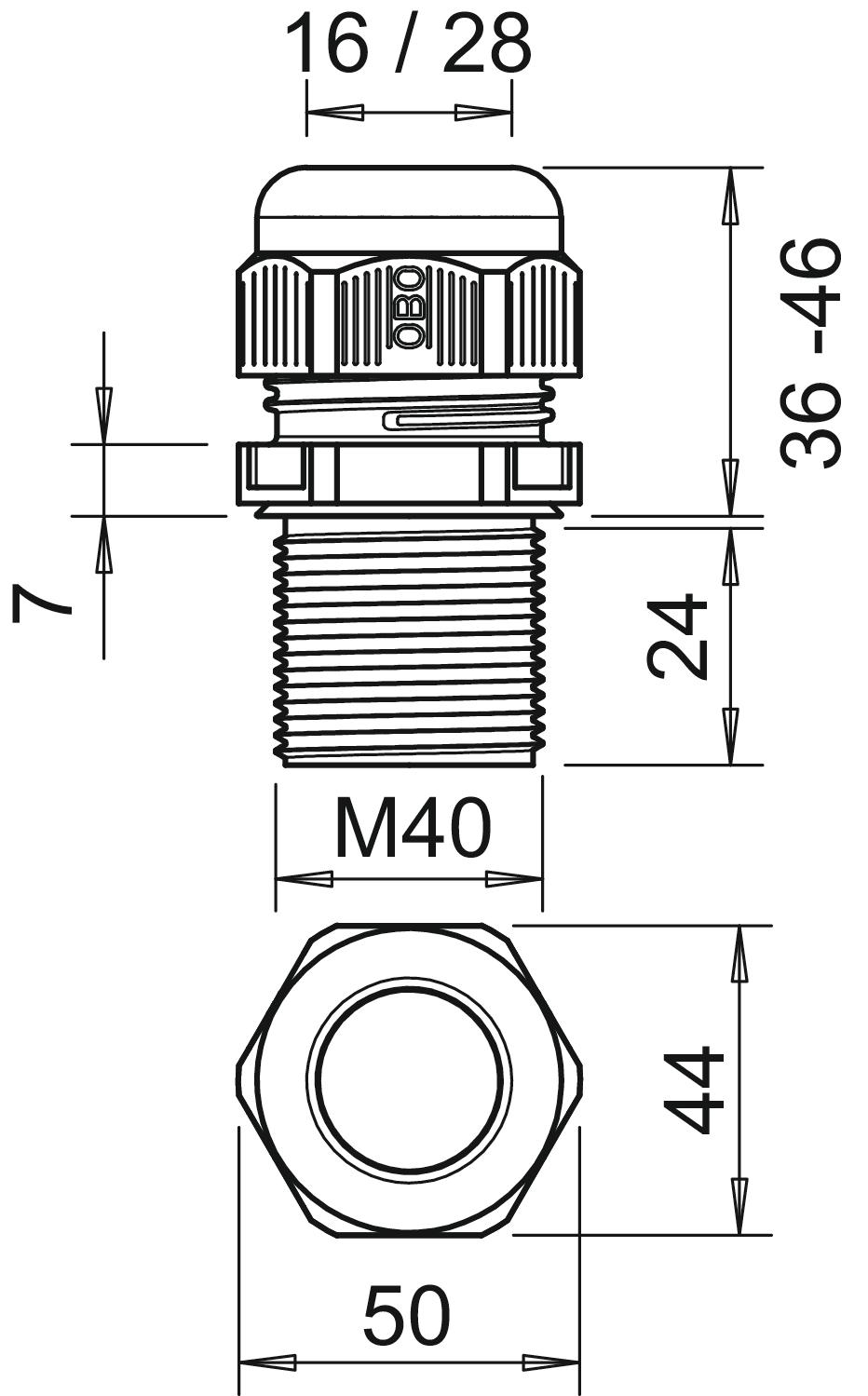 Bend protection no CO2 Footprint (GWP) Cradle-to-Gate 0,1941 kg CO2e / 1 Piece Colour Black Dimension M40 Dimension E 50 mm Dimension L max. 46 mm Dimension L min. 36 mm Dimension L1 24 mm Dimension L2 7 mm explosion-proof no Fibre-glass reinforced no Flame-resistant acc. to VDE 0471/DIN 695 Part 2-1, test temperature 650°C Flat cable gland no For Ex zone Without For Ex zone dust Without For Ex zone gas Without Halogen-free yes Hexagonal corner dimension 50 mm Impact-resistant no Material Polyamide Nominal thread size 40 Permitted temperature range, max. 65 °C Permitted temperature range, min. -20 °C Protection rating IP68 Sealing area D, max. 28 mm Sealing area D, min. 16 mm Sealing insert, multiple no Splittable gland no Strain relief option yes Thread M40 x 1,5 Thread increase 1,8 mm Thread length 24 mm Thread type Metric Type of seal Sealing ring Unstable torque 10 Nm Version for Straight WAF 44 With locknut no - All types