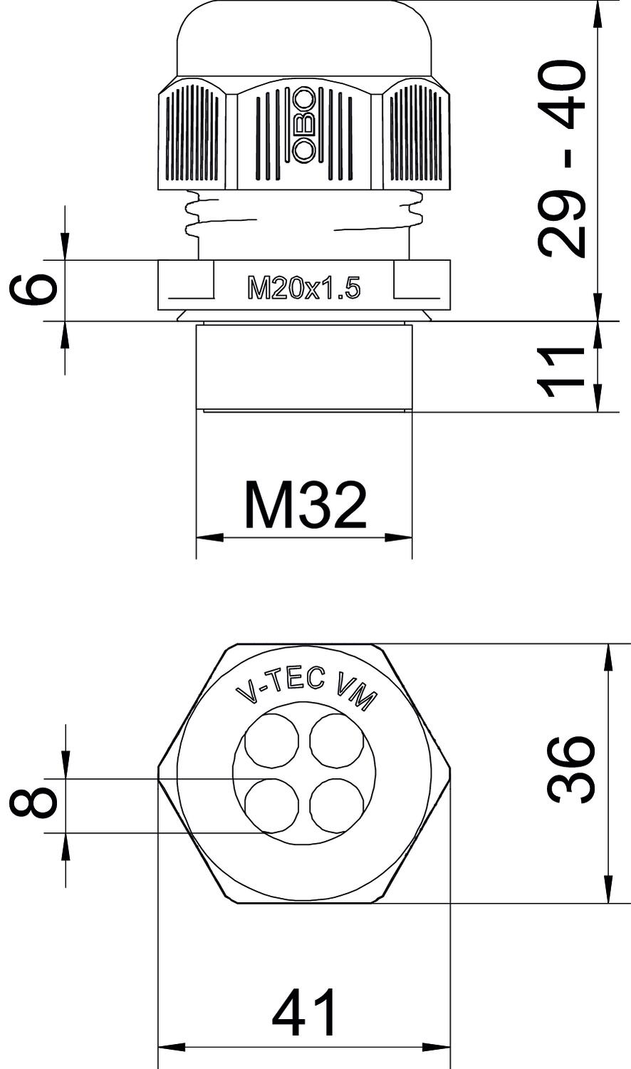 Bend protection no CO2 Footprint (GWP) Cradle-to-Gate 0,1048 kg CO2e / 1 Piece Colour Light grey Dimension M32 Dimension D 8 mm Dimension E 41 mm Dimension L max. 40 mm Dimension L min. 29 mm Dimension L1 11 mm Dimension L2 6 mm explosion-proof no Fibre-glass reinforced no Flame-resistant acc. to VDE 0471/DIN 695 Part 2-1, test temperature 650°C Flat cable gland no For Ex zone Without For Ex zone dust Without For Ex zone gas Without Halogen-free yes Hexagonal corner dimension 41 mm Impact-resistant no Material Polyamide Nominal thread size 32 Number of drill holes 4 Permitted temperature range, max. 65 °C Permitted temperature range, min. -20 °C Protection rating IP68 Sealing insert, multiple yes Splittable gland no Strain relief option yes Thread M32 x 1,5 Thread increase 1,5 mm Thread length 11 mm Thread type Metric Type of seal Sealing ring Unstable torque 7,5 Nm Version for Straight WAF 36 With locknut no - All types
