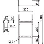 CO2 Footprint (GWP) Cradle-to-Gate 9,5934 kg CO2e / 1 Meter Colour zinc Dimension 110x300x6000 Dimension 110x300x6000 Dimension B 300 mm Fastening of rung Blind riveted Height 110 mm Length 6000 mm Maintain electrical functions no Material Steel Rail thickness 1,5 mm Rung distance 300 mm Rung slot dimension 16,50 Rustproof steel, pickled no Side perforation yes Side rail version Flat profile Support spacing 2.0 m 3,1 kN/m Support spacing 2.5 m 2 kN/m Support spacing 3.0 m 1,4 kN/m Support spacing 3.5 m 0,9 kN/m Support spacing 4.0 m 0,65 kN/m Support spacing 4.5 m 0,55 kN/m Support spacing 5.0 m 0,5 kN/m Support spacing 6.0 m 0,15 kN/m Surface Strip galvanized Usable cross-section 28300 mm² Usable cross-section 283 cm² Version of the rungs Profile perforated Wide-span version no Width 300 mm Technical data