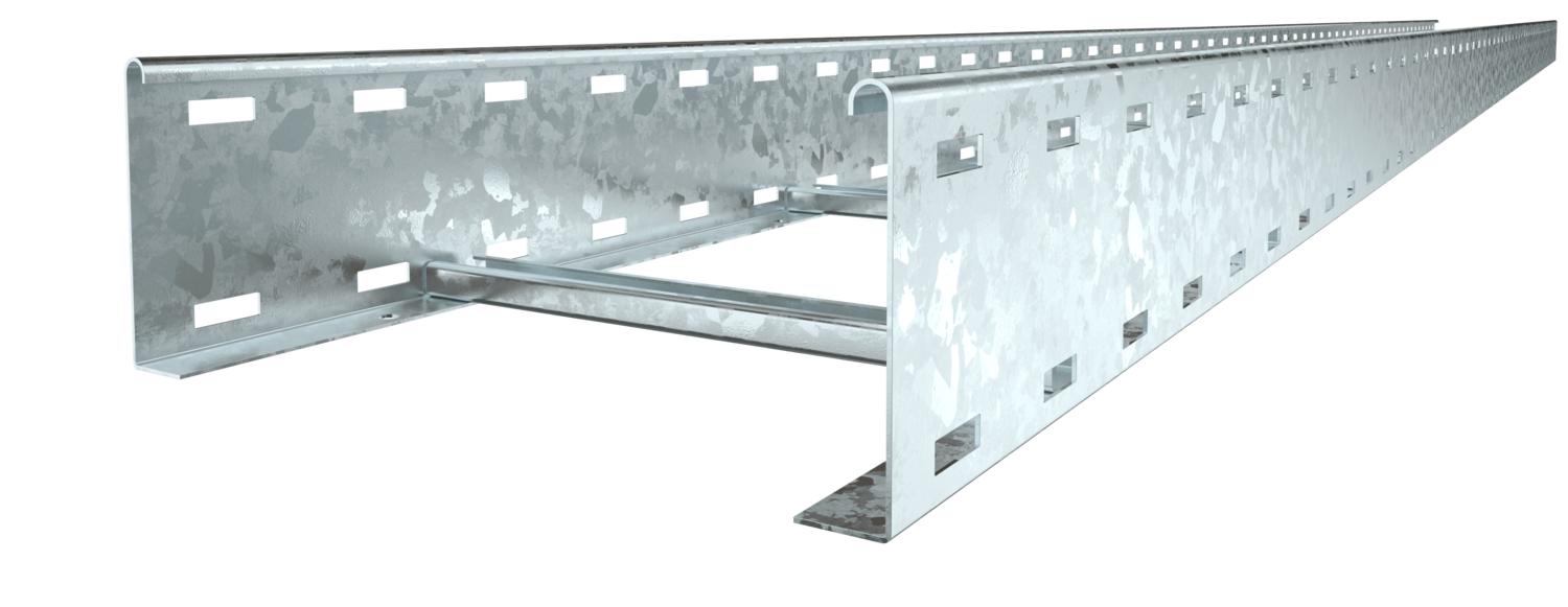 Product descriptionCable ladder with perforated side rail of side height 110 mm with riveted C profile rungs, open in an upwards direction.