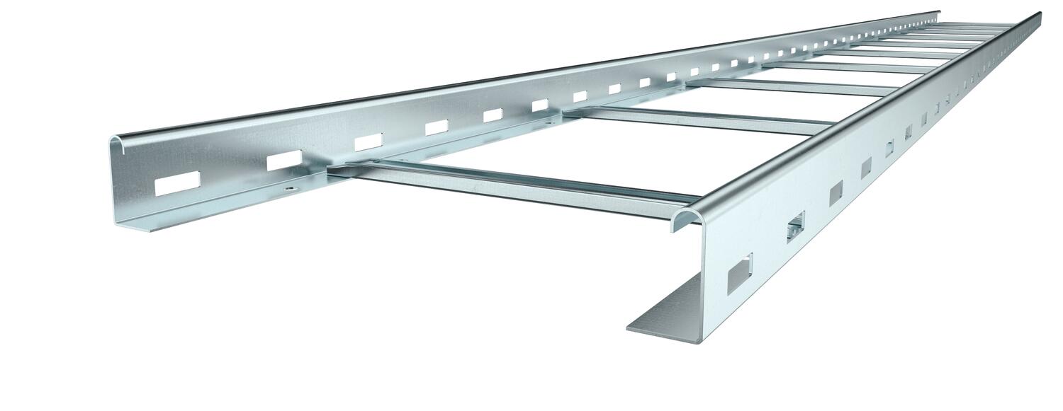 Product descriptionCable ladder with perforated side rail of side height 45 mm with riveted C profile rungs, open in an upwards direction.