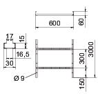 CO2 Footprint (GWP) Cradle-to-Gate 8,6548 kg CO2e / 1 Meter Colour zinc Dimension 60x600x3000 Dimension 60x600x3000 Dimension B 600 mm Fastening of rung Blind riveted Height 60 mm Length 3000 mm Maintain electrical functions no Material Steel Rail thickness 1,5 mm Rung distance 300 mm Rung slot dimension 16,50 Rustproof steel, pickled no Side perforation yes Side rail version Flat profile Support spacing 1.5 m 3,1 kN/m Support spacing 2.0 m 2,25 kN/m Support spacing 2.5 m 1,5 kN/m Support spacing 3.0 m 1,1 kN/m Support spacing 3.5 m 0,75 kN/m Support spacing 4.0 m 0,45 kN/m Support spacing 4.5 m 0,3 kN/m Support spacing 5.0 m 0,15 kN/m Surface Strip galvanized Usable cross-section 298 cm² Usable cross-section 29800 mm² Version of the rungs Profile perforated Wide-span version no Width 600 mm Technical data
