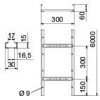 CO2 Footprint (GWP) Cradle-to-Gate 14,8096 kg CO2e / 1 Meter Colour stainless steel Dimension 60x300x6000 Dimension 60x300x6000 Dimension B 300 mm Fastening of rung Blind riveted Height 60 mm Length 6000 mm Maintain electrical functions no Material Stainless steel 1.4301 Rail thickness 1,5 mm Rung distance 300 mm Rung slot dimension 16,50 Rustproof steel, pickled no Side perforation yes Side rail version Flat profile Support spacing 1.5 m 3,1 kN/m Support spacing 2.0 m 2,25 kN/m Support spacing 2.5 m 1,5 kN/m Support spacing 3.0 m 1,1 kN/m Support spacing 3.5 m 0,75 kN/m Support spacing 4.0 m 0,45 kN/m Support spacing 4.5 m 0,3 kN/m Support spacing 5.0 m 0,15 kN/m Surface Bright, treated Usable cross-section 14800 mm² Usable cross-section 148 cm² Version of the rungs Profile perforated Wide-span version no Width 300 mm Technical data