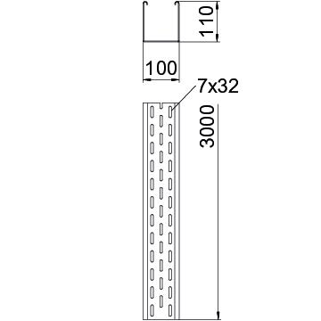 CO2 Footprint (GWP) Cradle-to-Gate 12,0361 kg CO2e / 1 Meter Colour zinc Connector version Without connectors Dimension 110x100x3000 Dimension B 100 mm Dimension H 110 mm Dimension L 3000 mm Height 4 in Height 110 mm Length 3000 mm Length 10 ft Load test type according to IEC 61537 Type II Maintain electrical functions no Material Steel Mounting perforation in base yes NATO hole pattern no Plate thickness 0,08 in Plate thickness 2 mm Rustproof steel, pickled no Side perforation no Support spacing 1.5 m 5,07 kN/m Support spacing 2.0 m 4,75 kN/m Support spacing 2.5 m 2,73 kN/m Support spacing 3.0 m 2 kN/m Surface Strip galvanized Type of connector, cable support system Screwed Usable cross-section 96 cm² Usable cross-section 9600 mm² Wide-span version no Width 4 in Width 100 mm With cover no - All types