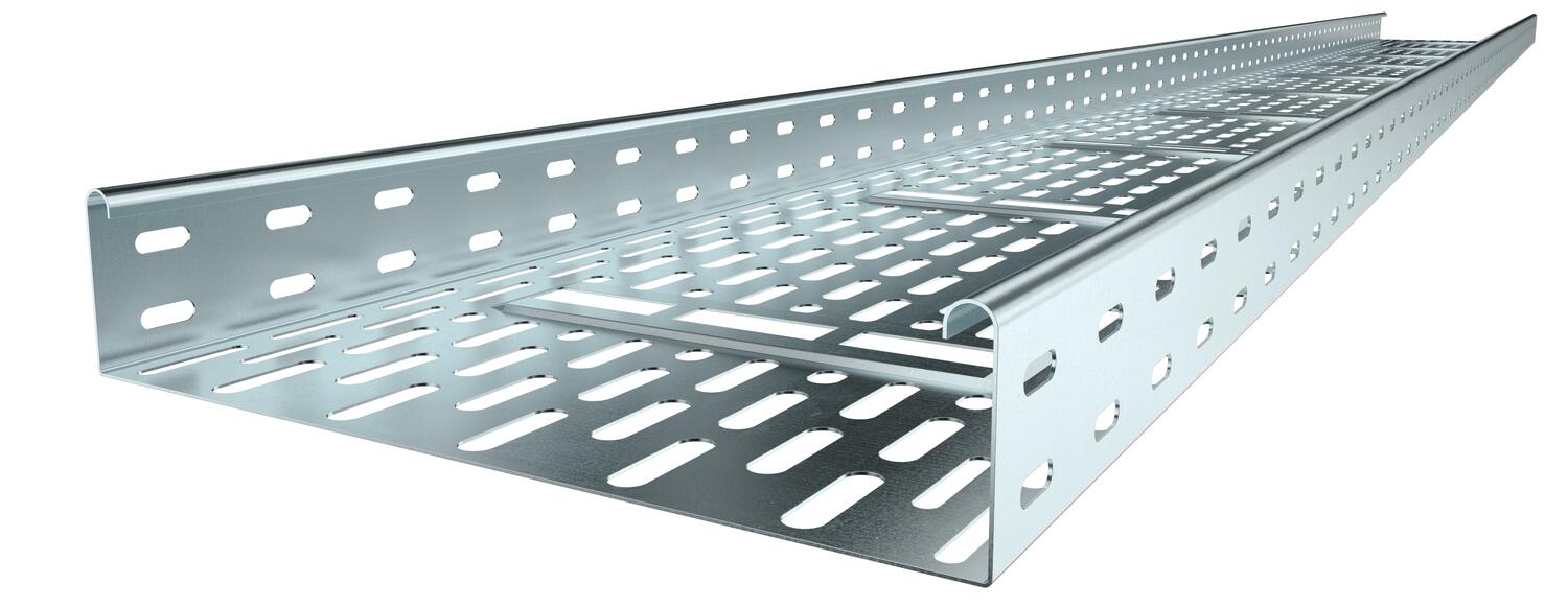 Permeable cable tray system to VdS guideline 2092 with 30% hole surface for use under sprinkler systems.