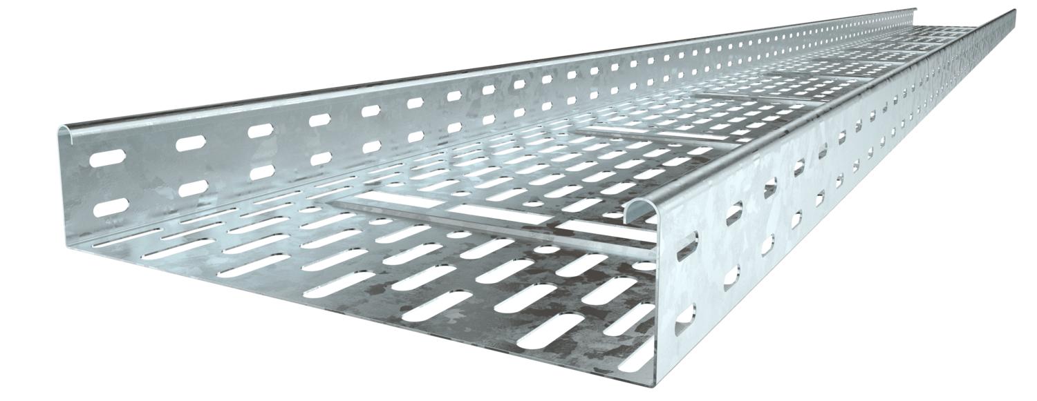 Permeable cable tray system to VdS guideline 2092 with 30% hole surface for use under sprinkler systems.