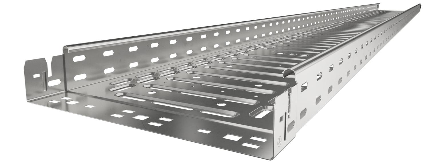 The cable tray has continuous side perforations of 7 x 20 mm for the installation of additional connection and mounting components.